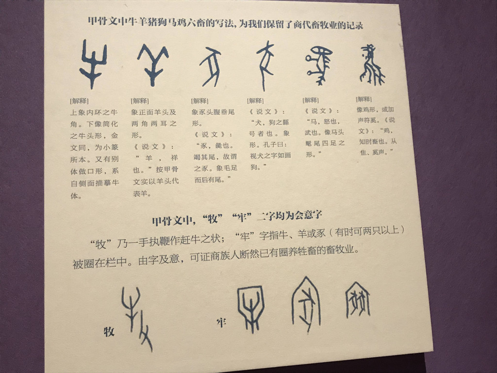 甲骨文六畜的写法,告诉我们,早在商代,距今3600多年前,我们华夏民族的先祖们,早就已经掌握了牛羊猪狗马鸡的家养与驯化技术,使得人类的寿命与健康,得到质的飞跃