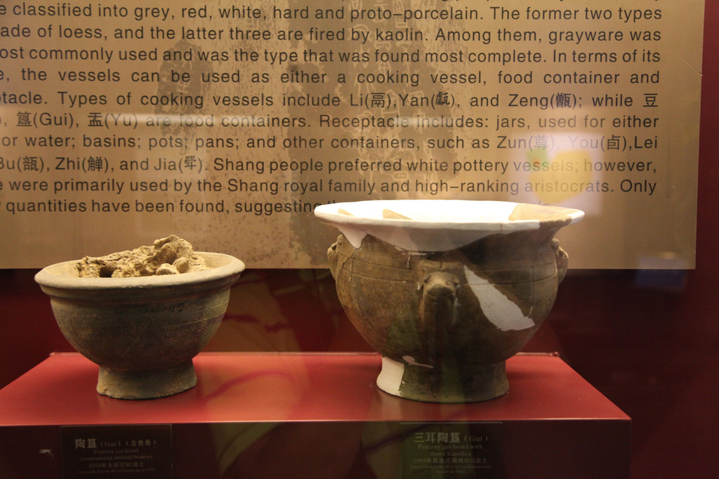 殷商时期的陶瓷和陶罐,展示出当时人民的生活与生产情形,殷墟