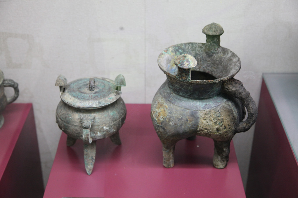 铜鼎,铜盒和酒樽,高脚酒杯,酿酒技术也开始流行