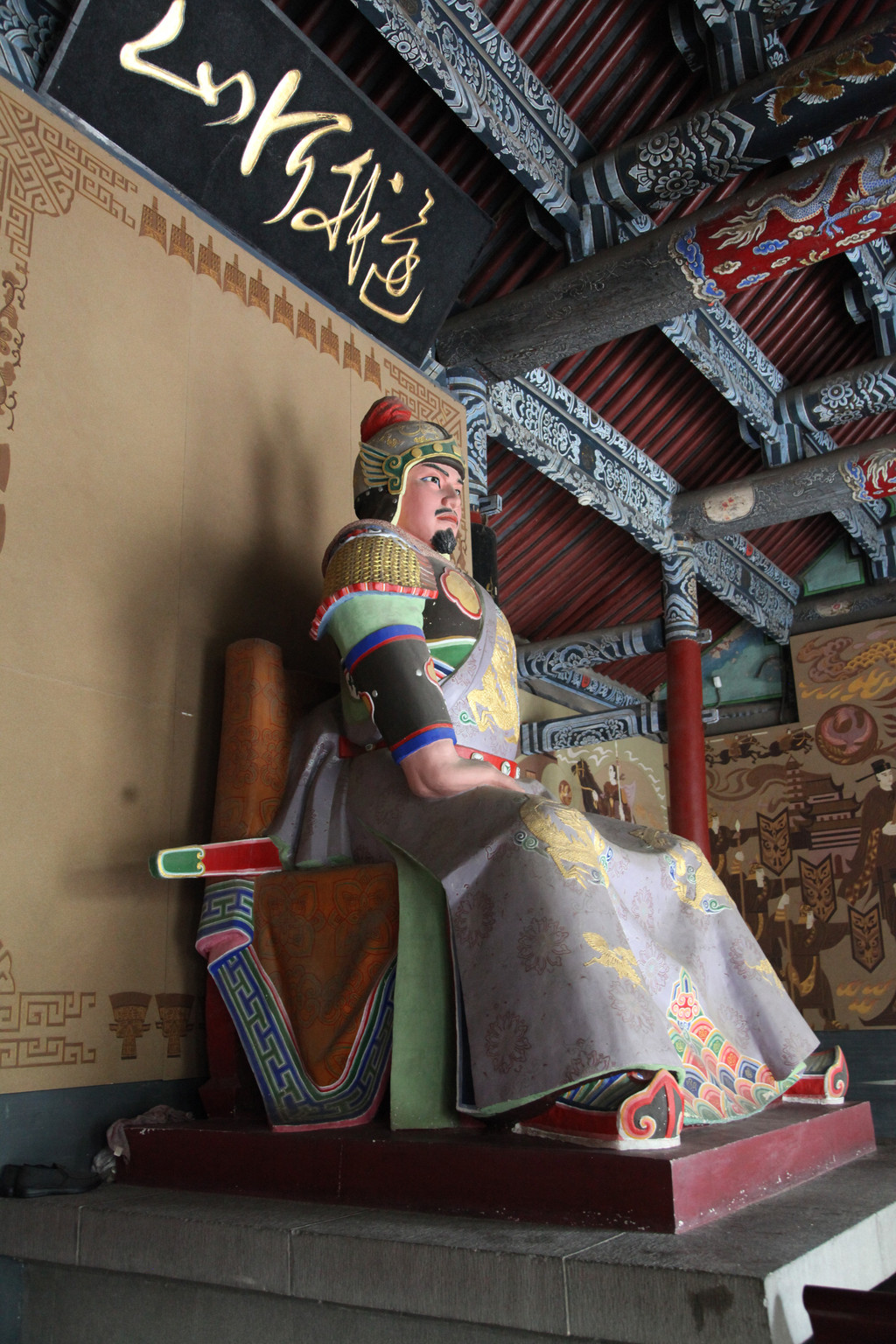 正殿中央为岳飞彩塑坐像,高丈余,英武魁伟,正气凛凛,和杭州岳王庙的雕塑非常神似。岳飞塑像的上方,高悬“还我河山”的贴金巨匾,这是岳元帅一生不懈的追求。