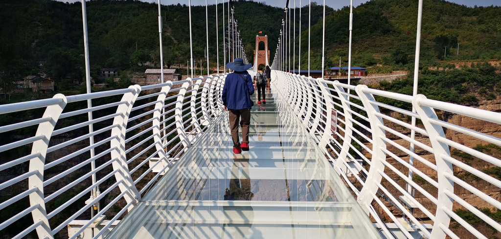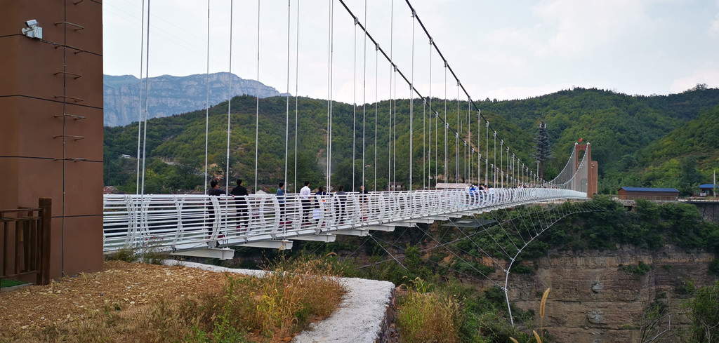 站立桥中,能360度观赏风景,头顶蓝天白云,脚下峡谷沟深,环顾四周能将太行大峡谷周围的风景尽收眼底,如一幅国画山水画卷般展示着太行大峡谷的壮美秀丽,伴随着峡谷中迎面吹来阵阵清风,好一派心旷神怡!
