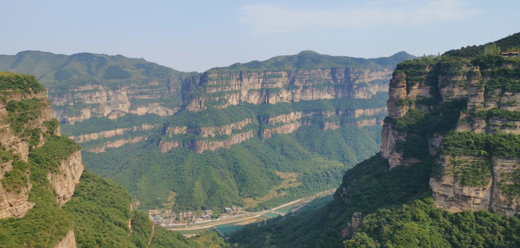 中国林州太行大峡谷,地处晋豫两省交界,位于河南省安阳市林州西北部,南北长100华里,东西宽8华里,这是由河水切割林虑山中形成的一个长50公里、宽1.5公里的深切峡谷,两岸为典型的嶂石岩地貌,台壁交错、谷幽峰奇,形成气势恢弘的大峡谷风光,海拔800- -1739米,相对高差达1000米以上,境内断崖高起,群峰峥嵘,阳刚劲露,台壁交错,苍溪水湍,流瀑四挂,峰、峦、台、壁、峡、瀑、嶂、泉,姿态万千,是北方山水风光的典型代表。太行大峡谷更是与雅鲁藏布江大峡谷、长江三峡等共同被评为中国十大最美峡谷。