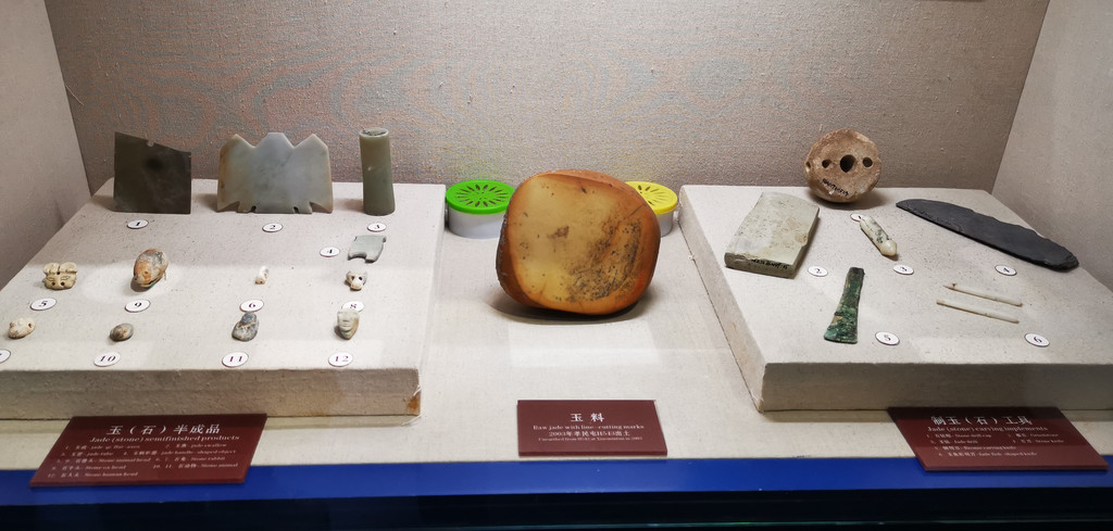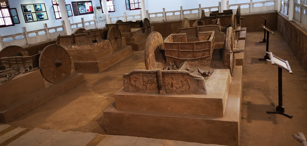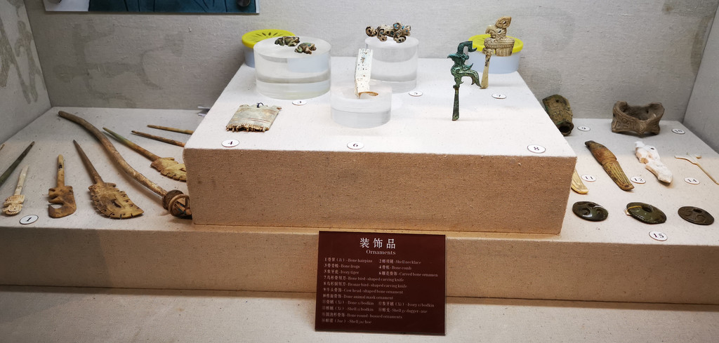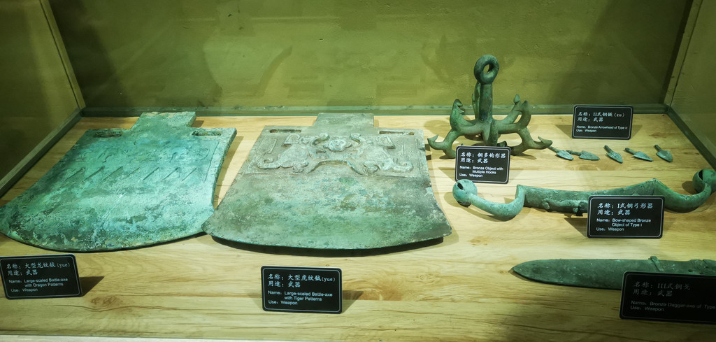 地下陈列着当时的钩、钺、弓、匕、箭簇等兵器。