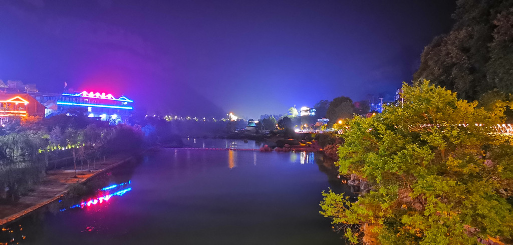 两岸灯火通明,北方山区的夜景有点颠覆人的想像。