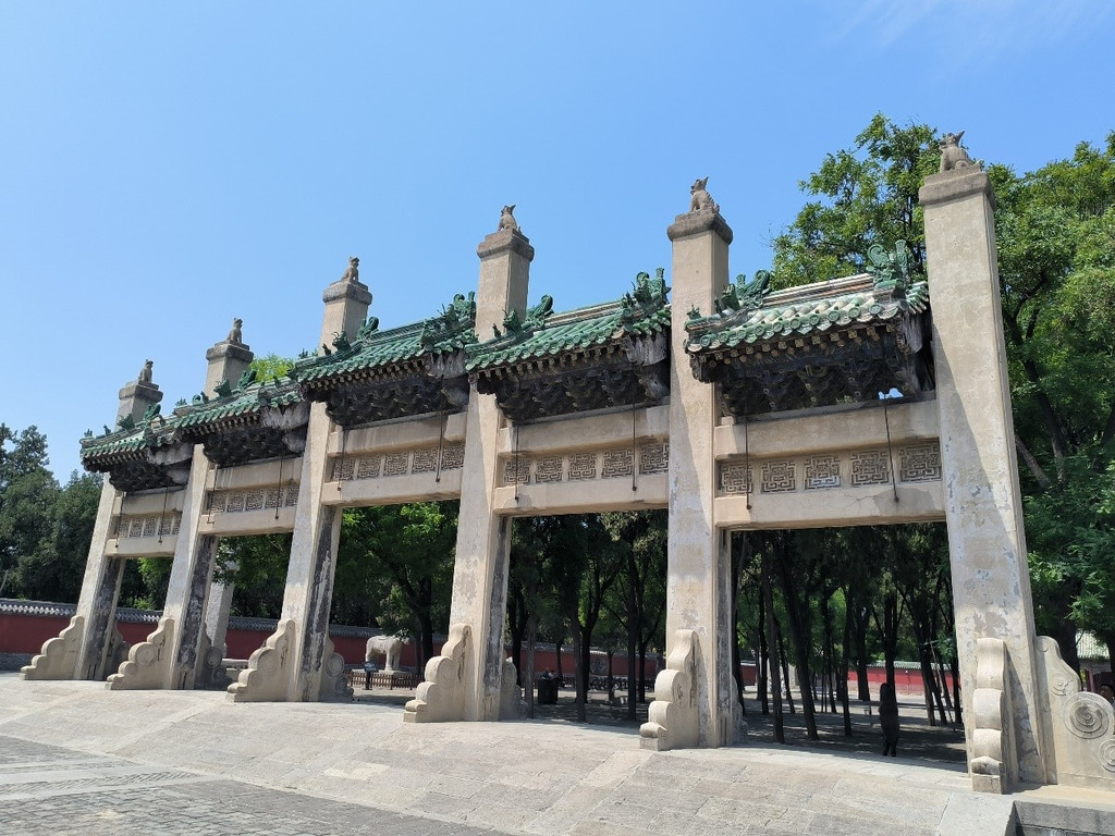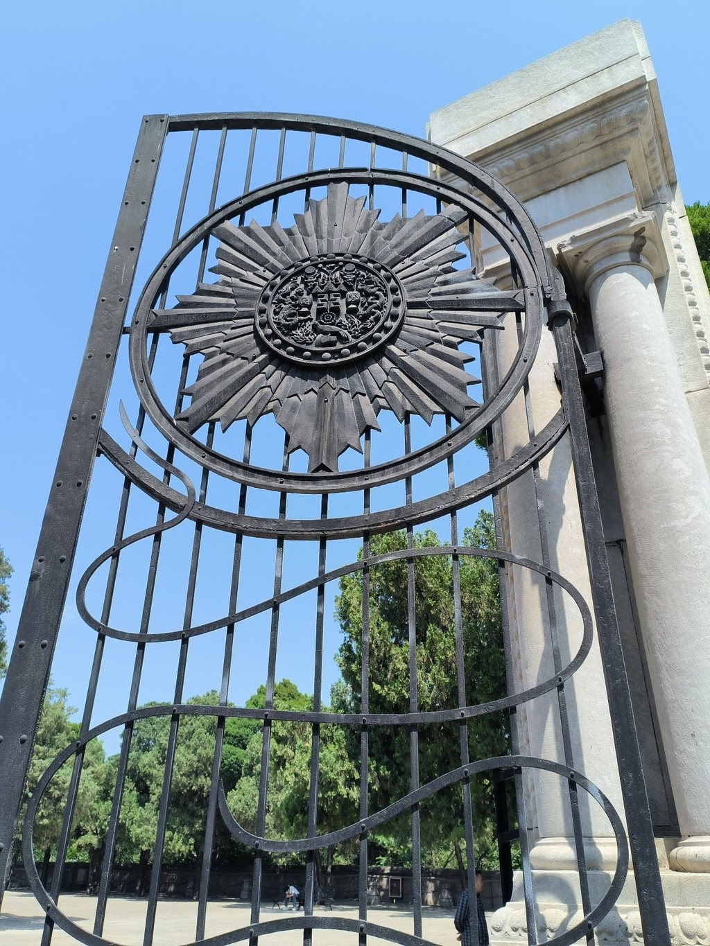 5月2日,我爱人上午自己去了仓巷街、县前街和城隍庙,于午饭前返回。我的酒店订单是含午饭的,所以我们三人在酒店吃了中饭,饭后前往袁林。袁林是民国大总统袁世凯的墓,全中国能以“林“为墓地称谓的,除了文圣人孔子武圣人关公外,就属袁世凯了。袁林按照明清皇家陵寝的格局,设有照壁、石像生、神道、碑亭、牌楼、享殿和配殿,构筑手法中西合璧,石质建筑构件使用青白石,享殿台基使用三出阶的皇家制式,墓冢则仿美国第18任总统格兰特濒河庐墓的形制,为内包水泥、外砌石墙的欧式风貌。墓冢前有铁门,门上饰以钢雕“十二章纹”以示身份。袁林保存得出乎意料的好,这得益于毛泽东的一句话,“让它成为反面教材”。