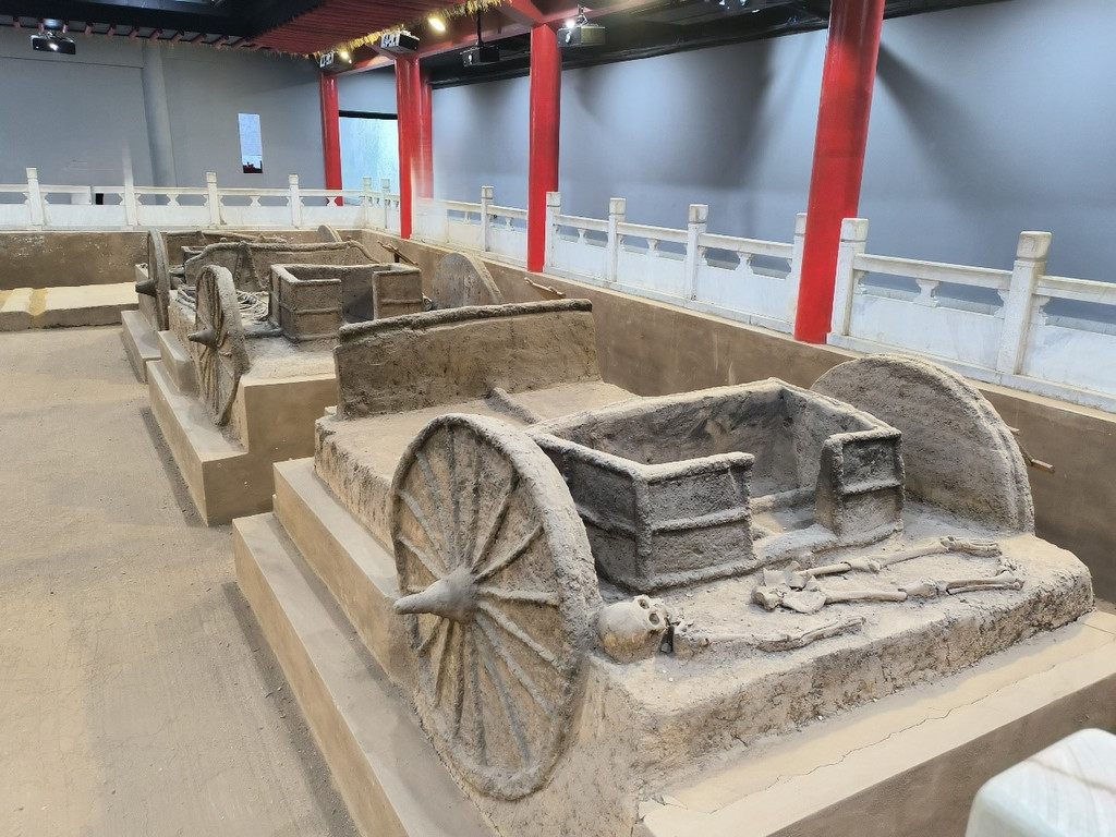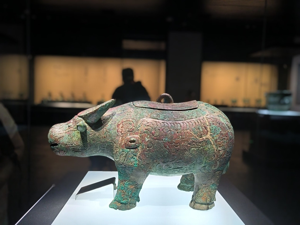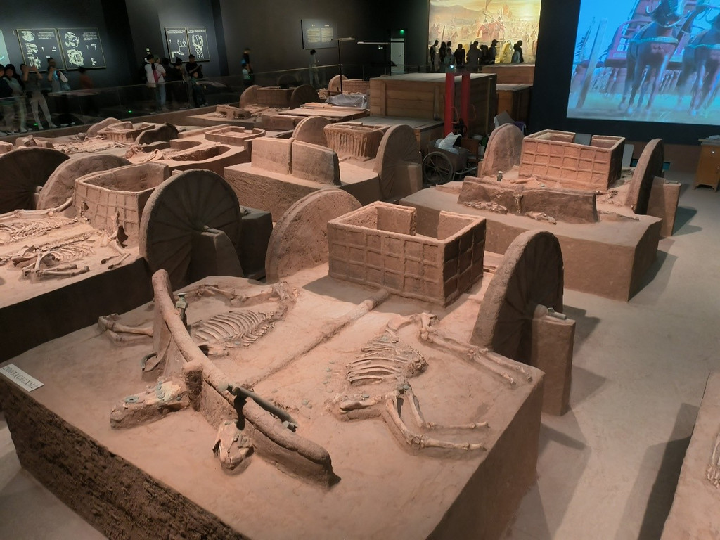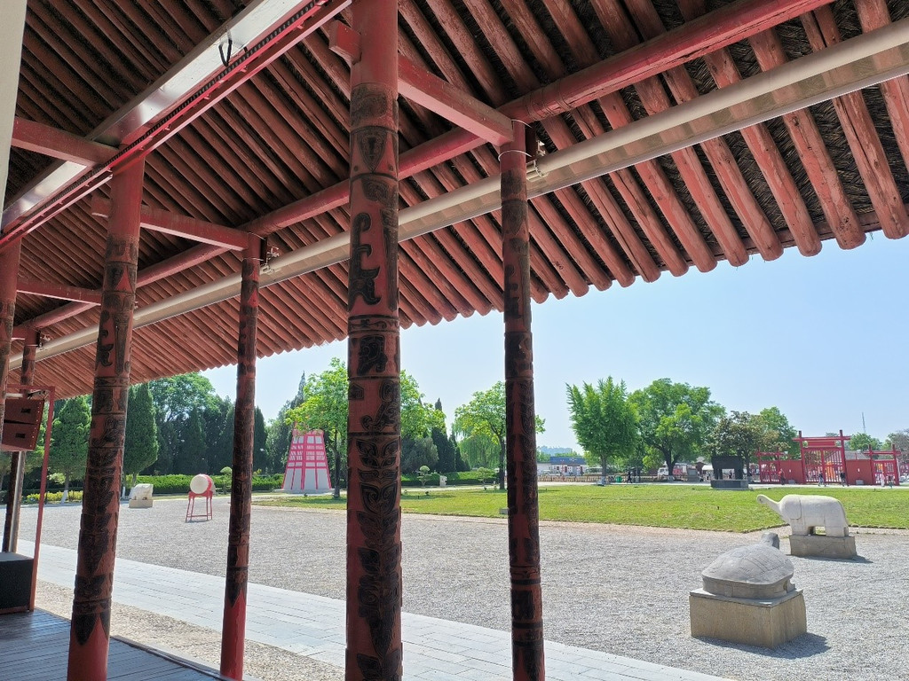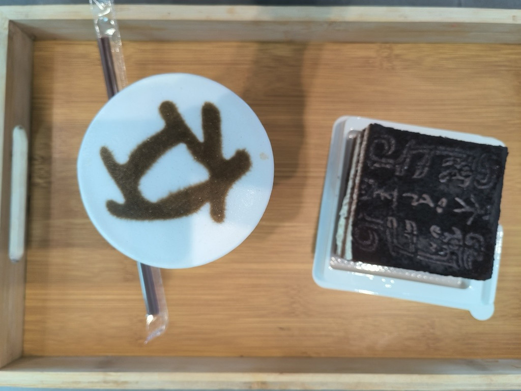5月1日,在酒店用早餐。早餐虽比不上我们曾经住过得酒店,但足够吃饱,有水果、粥、鸡蛋、包子、小菜、油条等,也算丰富了,美中不足的是没有咖啡。我吃下来,觉得肉包好吃。9点左右我们前往殷墟宗庙遗址。殷墟联票是包括殷墟宗庙遗址、殷墟王陵和殷墟博物馆三处,王陵与宗庙遗址之间可凭联票免费乘坐摆渡车,但因王陵较远,不适合老妈前往,所以我们只去了宗庙区和博物馆。今天的行程是我们此次安阳行的重头戏,为确保老妈的身体无恙,她全程坐在轮椅上由我爱人推行。我们先游览宗庙区,宗庙区有妇好墓、甲骨文陈列厅、甲骨文窖穴、车马坑展示厅、乙组丙组基址。整个宗庙区就是当年的发掘现场,我们普通非专业游客需要通过想象,想象自己踏在三千多年前殷商的土地上,来获得那种神往的旅游体验。出宗庙区坐摆渡车2元/人,前往殷墟博物馆。殷墟博物馆有亚长墓出土文物专厅,我们看到了亚长牛尊、青铜假手,大名鼎鼎的妇好墓司母辛鼎也在博物馆中,遗憾的是没找到陶三通。在三楼咖啡厅,我点了一杯有甲骨文生肖字样的拉花咖啡和一块蛋糕(52元),及时补充了能量。