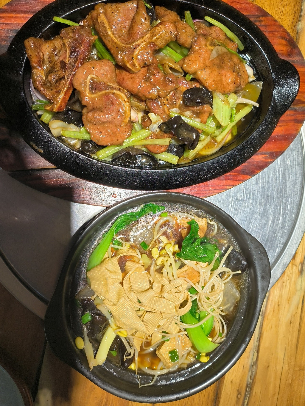 返回时,我爱人坐旅游58路前往曹操高陵(门票50元)。我和老妈因为前一天晚上没能在火车上睡好,当天我俩就地休息了。晚饭我们一路走到兴泰路上的“忆蜀家抄手”店,点了一碗三鲜抄手(13元)、铁板牛仔骨(48元)、素什锦砂锅(15元)、2碗米饭。