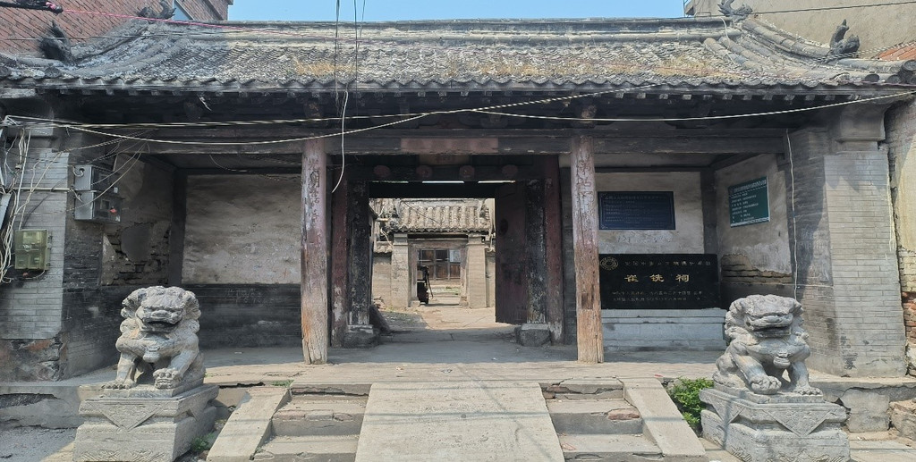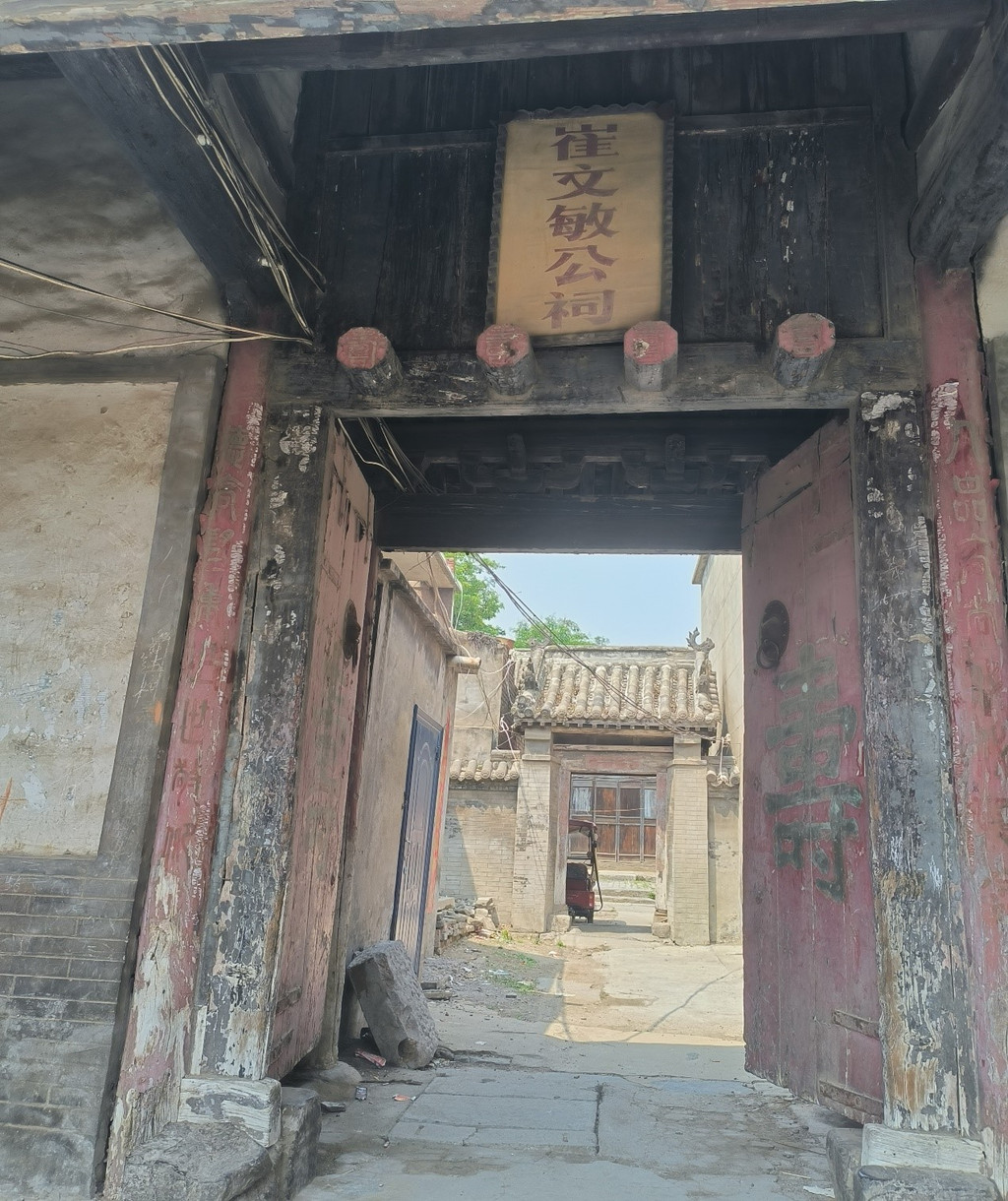这时候遇见两位从东北开车过来的中年夫妻,也是跟着导航寻到此处,在门外张望了一下,表示了失望,跟我们聊了几句就开车走了。我们继续沿影壁后街到文峰南街,看见了破破烂烂的崔铣祠。崔铣,明大儒,回归故里安阳后,潜心编纂《彰德府志》,让三千年古都有了一本前所未有的史志,成为现存最早的一本彰德府志,被尊称为历史善本。我们看到崔铣祠里面的住户都迁走了,但没钱修复。