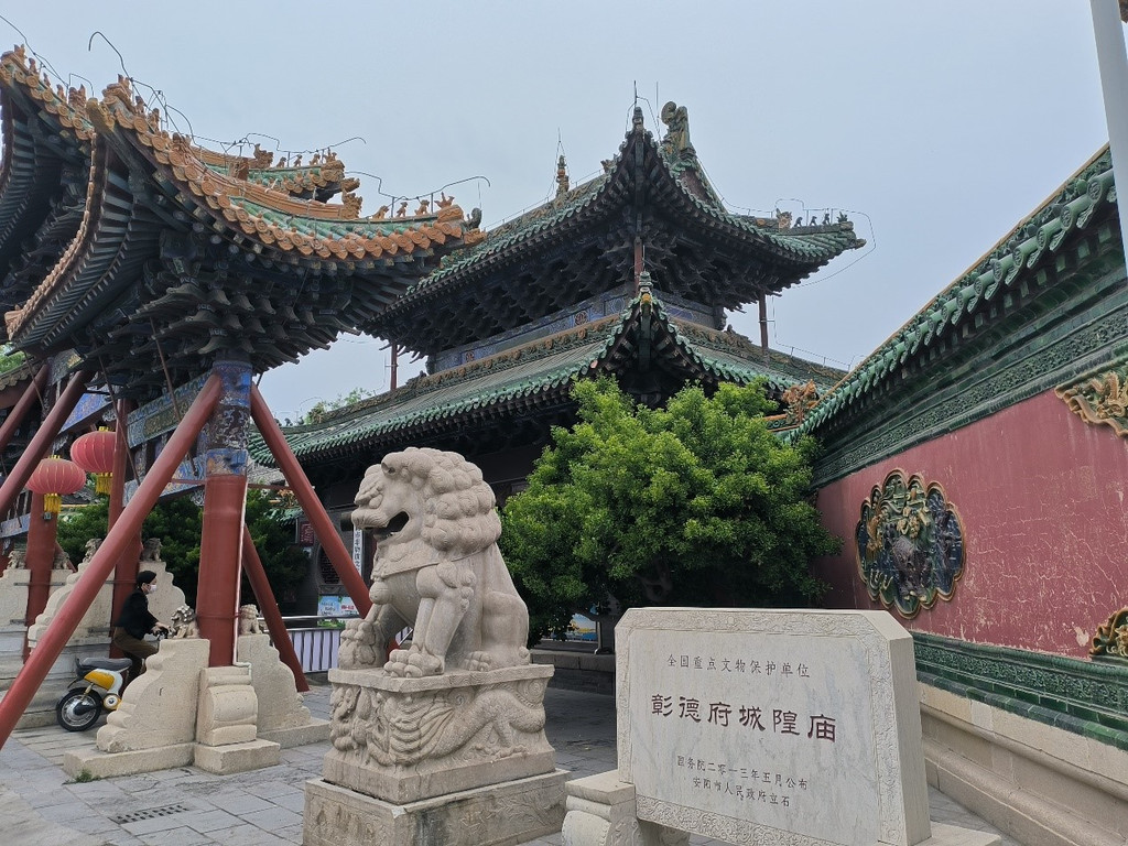 出天宁寺,我推着母亲返回。路过一处不知名的青砖建筑,就在丹尼斯百货旁的停车场内,有位老太太在烧香祭拜,查百度,有人说叫八角楼,有人说叫弥陀龛。历史就是这样,随着日子一天天地过去,真实已不可考,但除非被彻底湮灭,总会有痕迹能倔强地留存下来。下雨了,在丹尼斯百货商场里的瑞幸咖啡坐下来避雨,拿铁咖啡9.9元喝一杯,顺便吐槽了一下白水般的瑞幸咖啡。雨后继续前往城隍庙。我们沿文峰北街行进,行至南大街向南,走过一家“锦泰恒”老字号食品店,食品店售卖传统点心,据说老佛爷慈禧太后在八国联军侵华期间西逃西安,返京路过安阳时买过它们字号的点心,我们没买老佛爷喜欢的点心,买了自己喜欢的麻叶和蜜三刀。