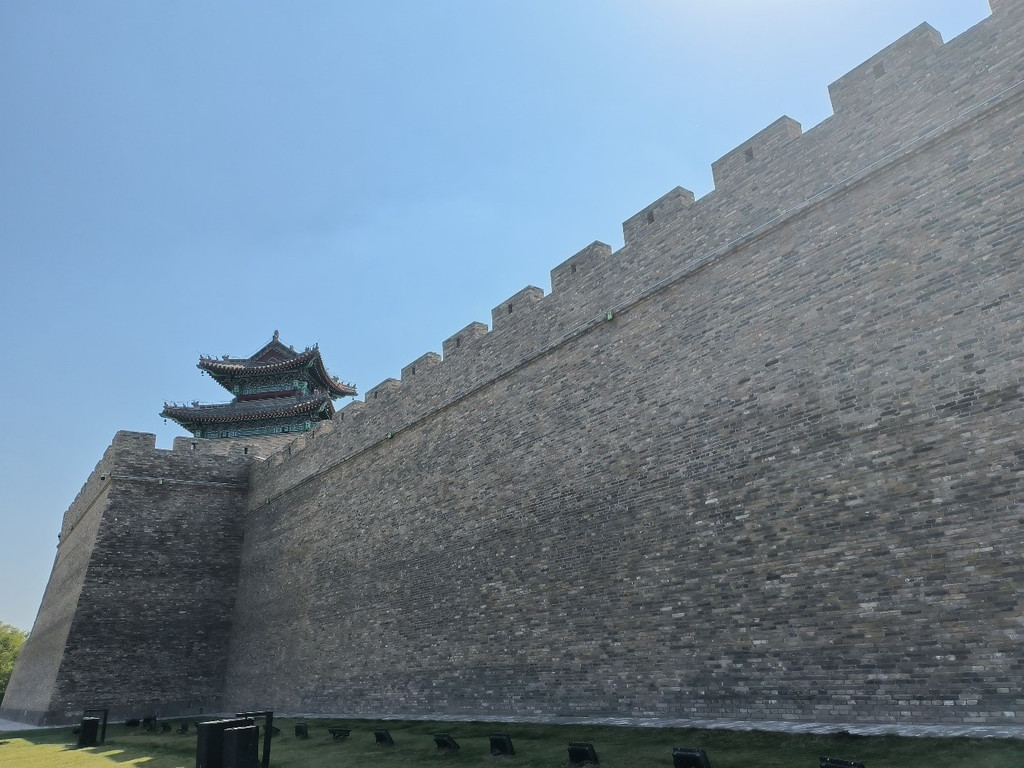 回程中,我们让出租车到安阳一中对面的魁星阁停下,游览魁星阁。魁星阁是安阳老城墙的一部分,是重建的,看见有人在为“五一”文旅活动做准备,排练汉服走秀。