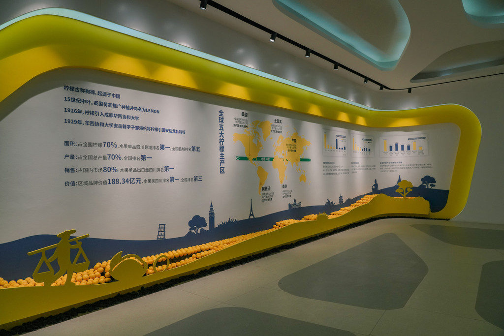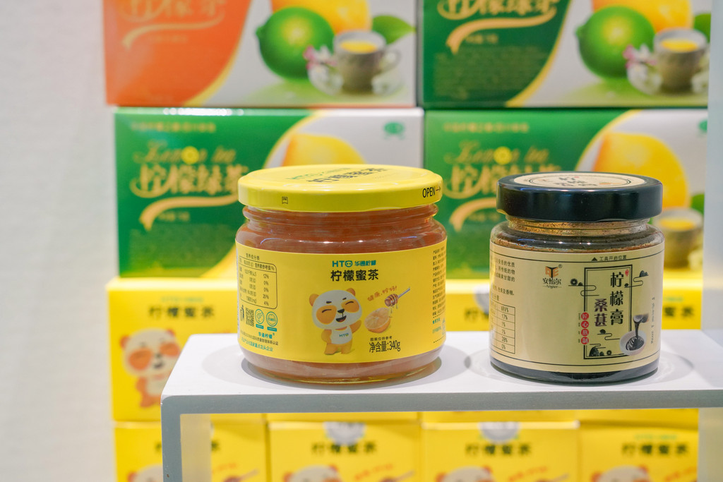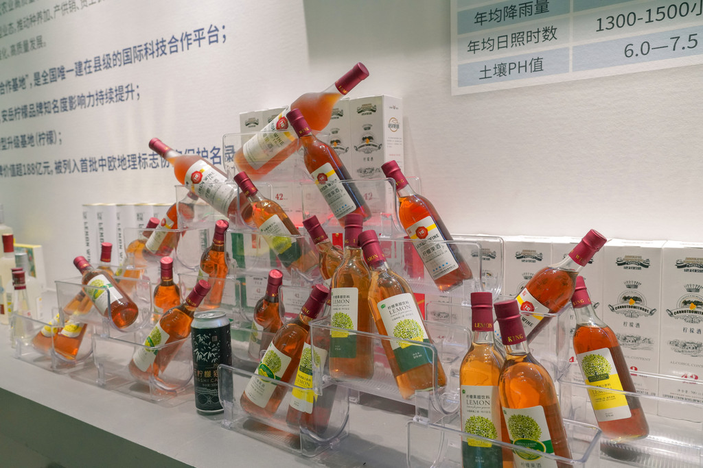 柠檬还能加工成很多产品,展厅内展示了柠檬蜜茶,柠檬酒,柠檬果醋,柠檬香水,柠檬面膜等等,可见柠檬的开发潜力巨大。