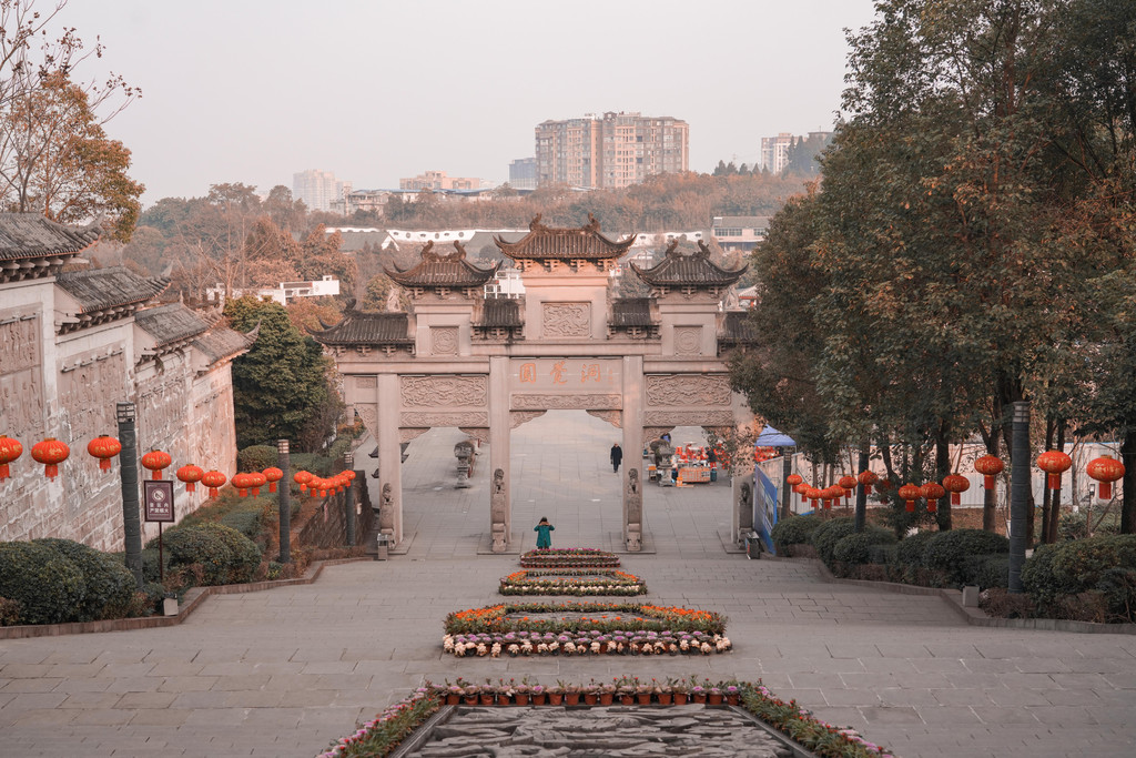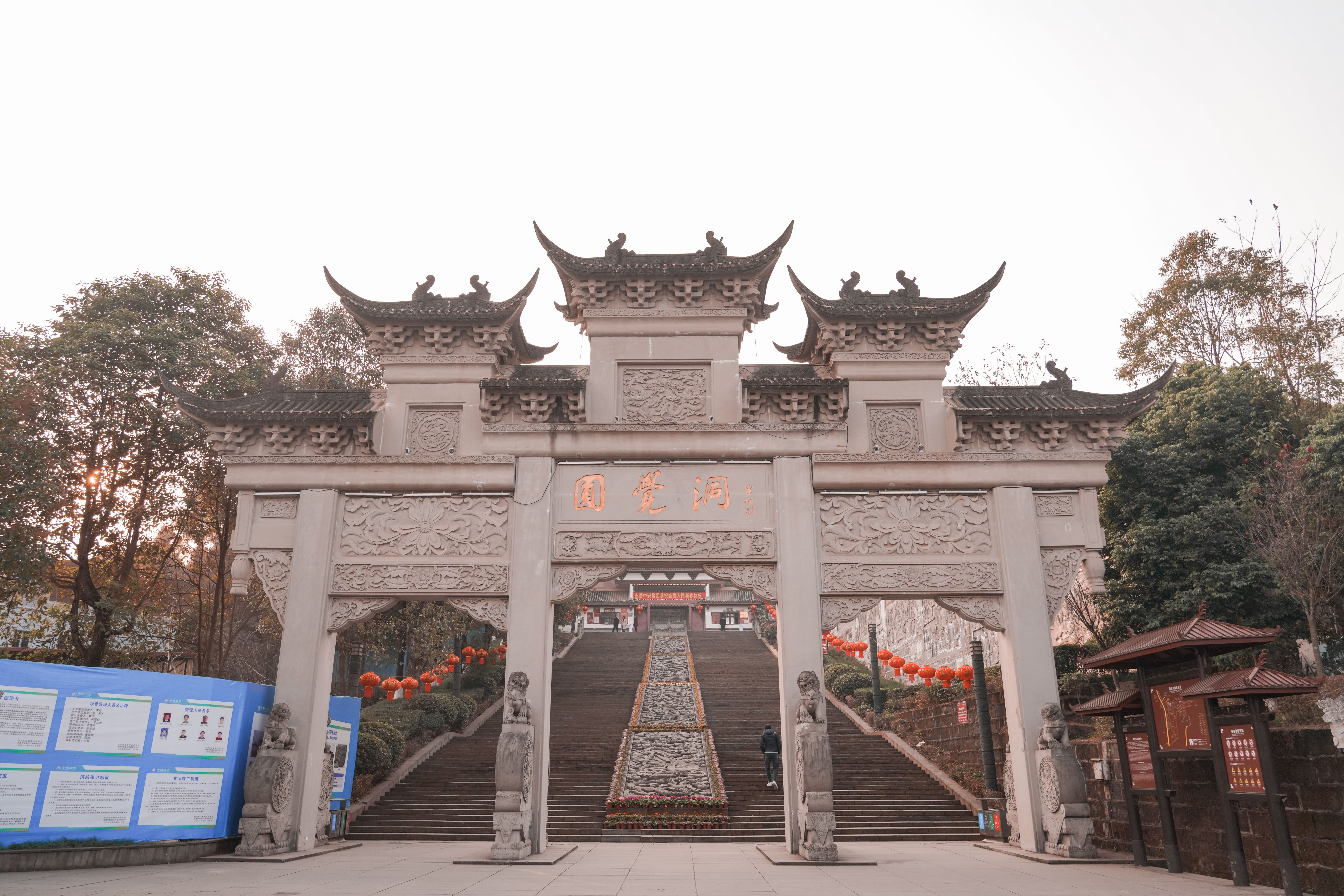 现在的圆觉洞大门是后面才修建的,数百级台阶尤为壮观,站在台阶上方,还能俯瞰整个安岳县城。