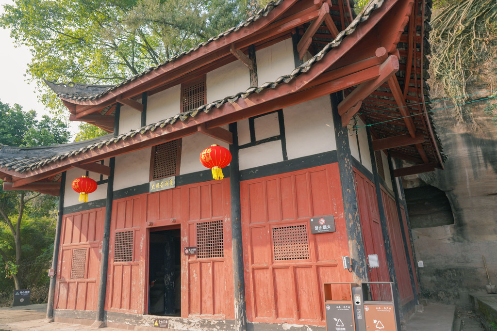 进入景区后,穿过教钟寺,就能欣赏到安岳石刻了。教钟寺大雄宝殿,建于明代初期,木构梁架抬梁式,单檐歇山式屋顶,是川东地区现存明代最完美的穿斗式木结构古寺庙建筑之一。如今的教钟寺内展示了安岳每一处石刻的介绍,在这里,我们也能通过照片看到每一处石刻的精美。