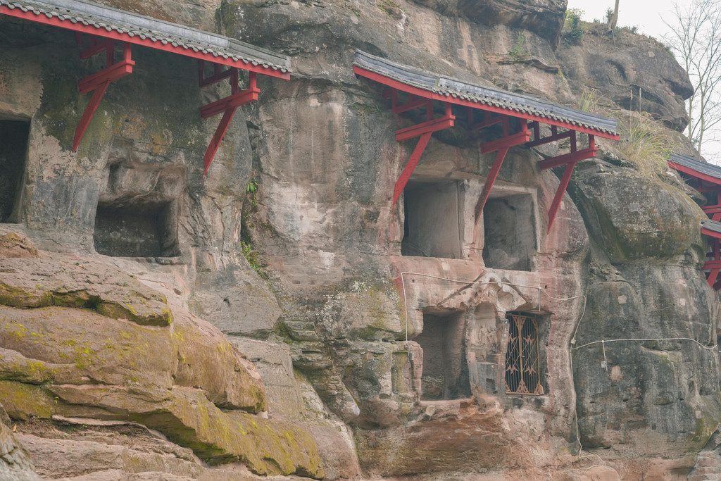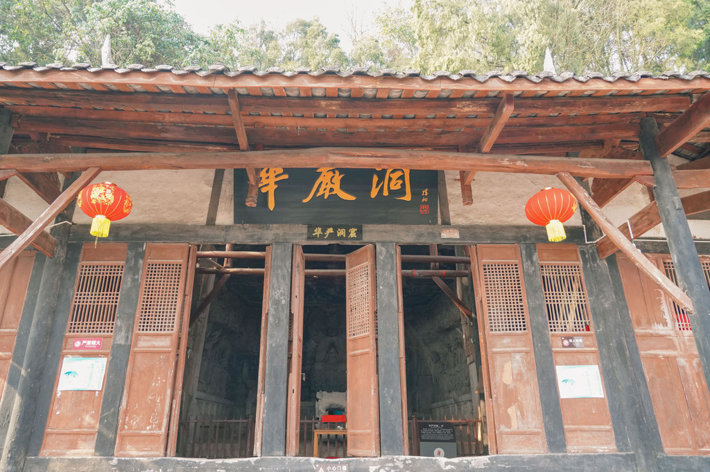 华严洞外有一个清代搭建的小檐,为了美观和保护作用。这个洞窟可以说是整个四川开凿得最大的一个摩崖洞窟,而且艺术价值和美观度达到了国内最高的一个窟,也是国内的十大洞窟之一。