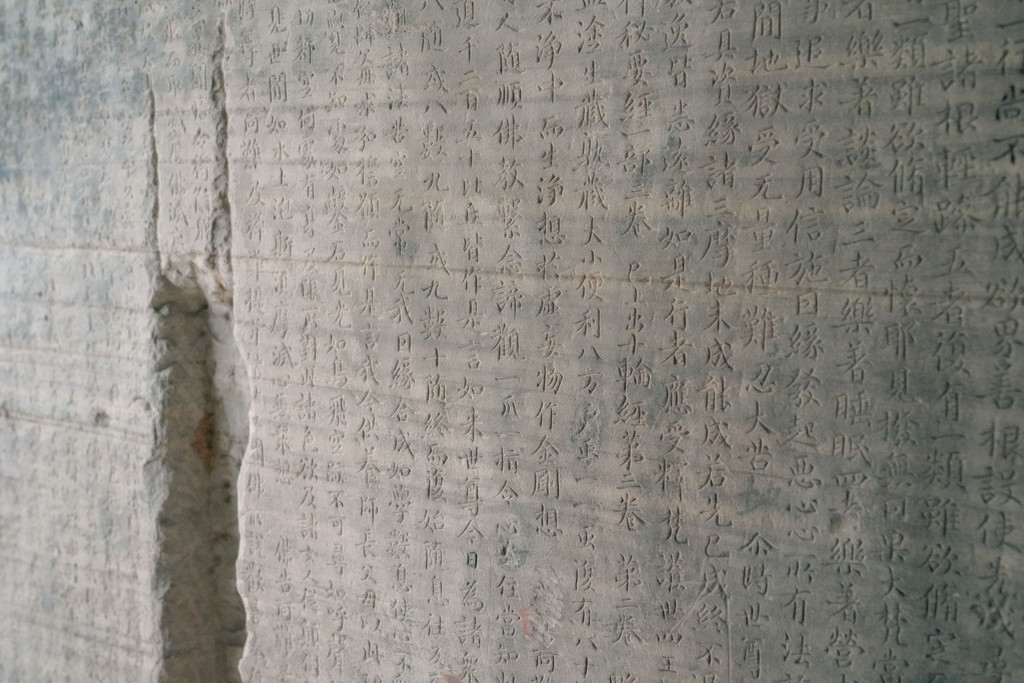 岩壁上都是密密麻麻的佛经,仔细看,还有很多简化字,颇为壮观。