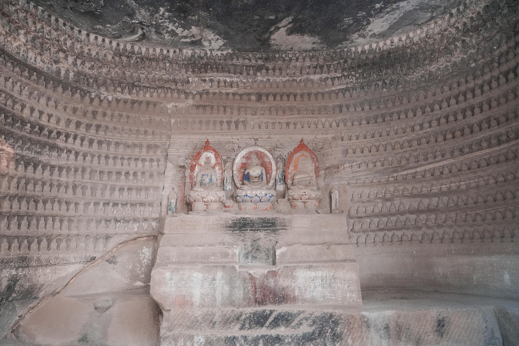 在毗卢洞景区内,还有一窟千佛像。这些千佛像代表着将近400个供养人,这里面的供养人除了出钱的,还有出力的,所以在全国的摩崖造像中也是不可多见的。