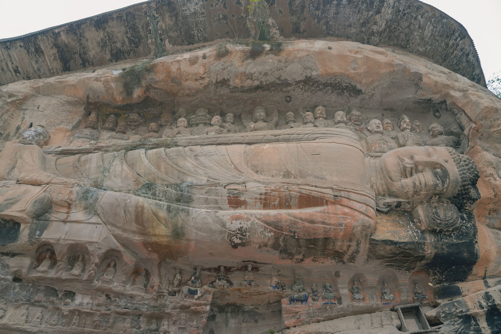 卧佛院的造像中,以《释加牟尼涅槃圣迹图》最为壮观。卧佛院以唐代造像为主,也是较大的唐代石窟群。