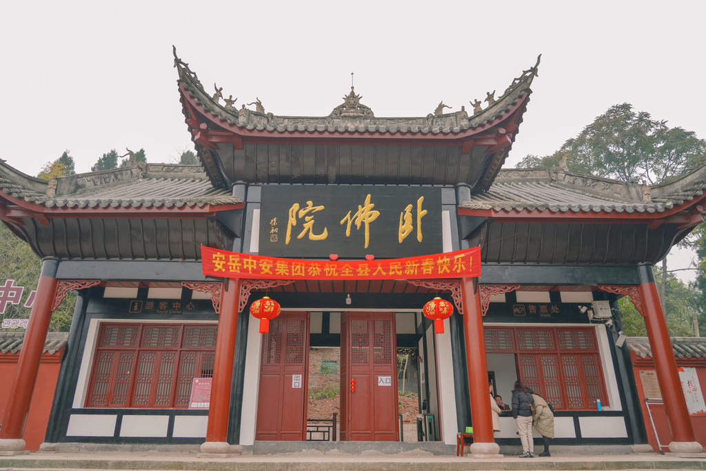 卧佛院位于安岳县城以北25公里的卧佛镇,以前这里叫八庙镇。该处山势蜿蜒,湖水滢绕,翠竹掩映,景色幽雅恬静。从入口处需要坐船或者乘观光车。