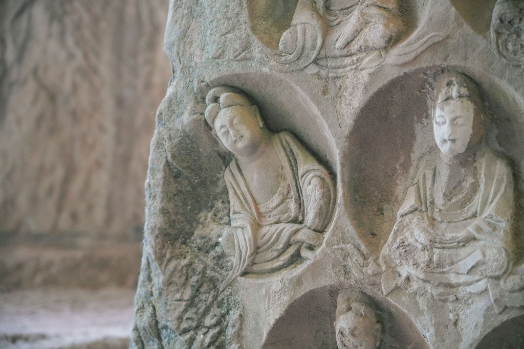 进入圆觉洞景区看到的第一个石刻是舍利塔,这个是晚唐密檐式摩岩浮图,非常的古朴庄重,一共13层,高8米,是佛教象征性纪念物。