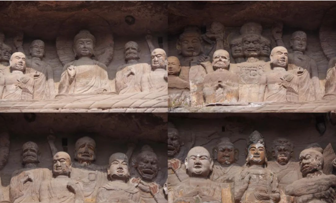 卧像旁边还有许多小型的佛像,神态各异,栩栩如生。 卧佛院在长约一公里的卧佛沟两侧高约20米的崖壁上,存留着大批刻造于唐代、五代、宋代的摩崖石刻造像和石刻佛经,现有文物编号126个,摩崖造像1613尊,石刻佛经15窟,现可辨清近40余万字。碑刻、题记、经幢、珍禽异兽数十处。造像题材多达57种。主要有:释迦说法图、涅槃经变、三身佛、弥勒佛、千佛、石刻佛经等。卧佛院尤以构图奇特,立意新颖,雕工精绝的“左侧卧佛”闻名于世。这些佛像都是由一块块巨石雕刻而成,工艺精湛,让人叹为观止。