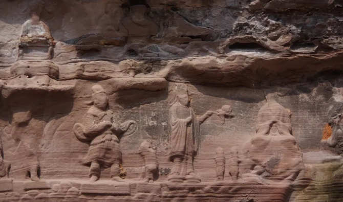 在卧佛院内漫步,看到卧佛院释迦牟尼涅槃经变像为我国最大的唐代全身石刻左侧卧佛造像,整铺造像依山取势,由上、下两组画面构成,靠上一组表现释伽牟尼入灭前临终说法,释迦牟尼居中,两侧为听法的弟子、菩萨、天龙八部。靠下一组表现释迦牟尼涅槃场景,释迦牟尼双足前为痛不欲生的密迹金刚,佛母摩耶夫人自兜率天宫而降,与释迦牟尼临终告别,手扶释迦,依依不舍。不禁让人陶醉于这里的自然风光。这里的山势险峻,水流潺潺,植被繁茂,处处展现出大自然的生机与魅力。漫步在院内的回廊上,透过绿叶的缝隙,可以看到远处的山峦和脚下的流水,让人心旷神怡。