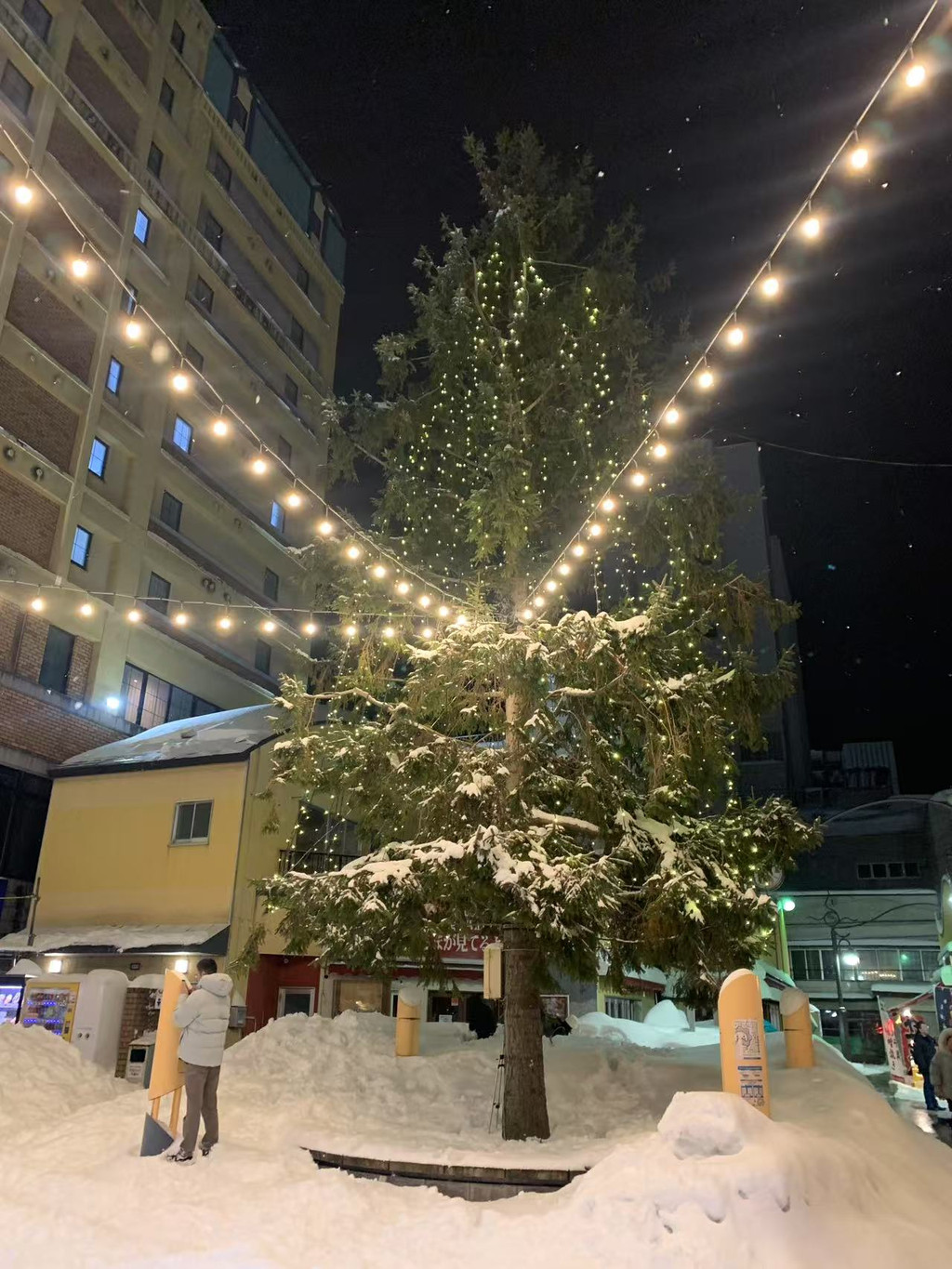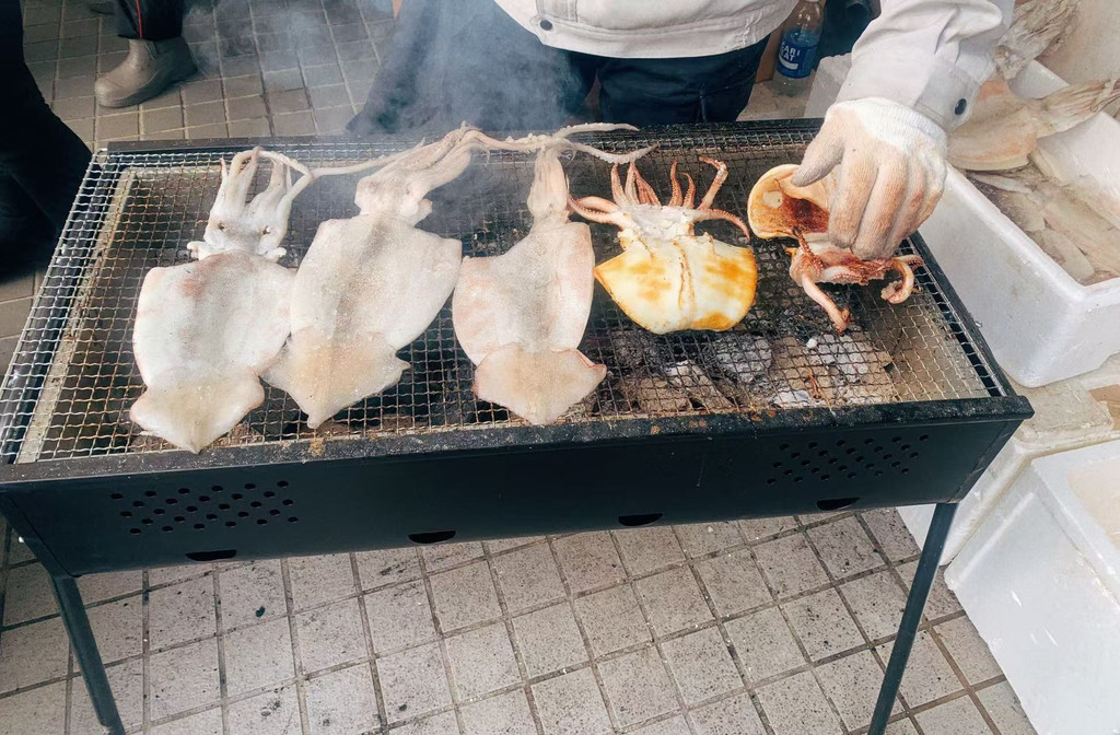 因为刚好是周日,青森市区也是在搞冰雪祭和睡魔灯笼祭活动,市场门前的烤鱿鱼真的超棒!