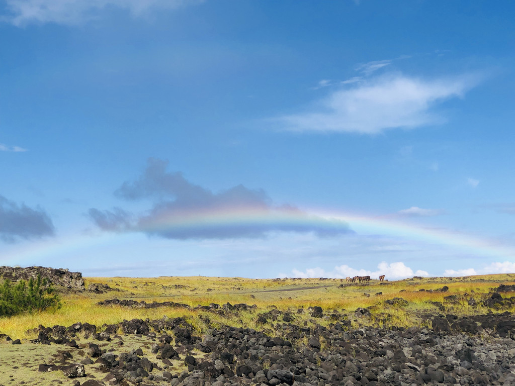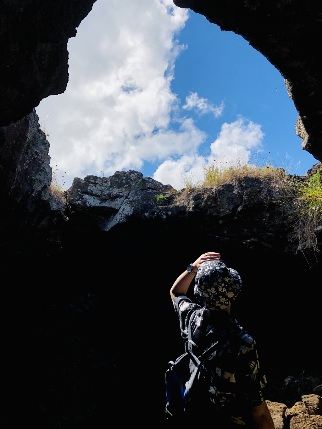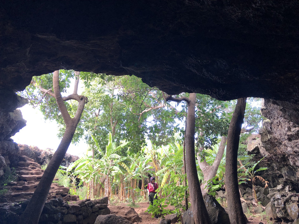 这是一个在天然形成的基础上,经过人工开凿后的洞穴,是原住民的早期居所之一。这个洞穴离Ahu Akivi不远,开车行至入口处后,需验票徒步前往,中间会传过一片开阔地。快到洞口的时候,看到一对加拿大老夫妻,穿着一身马术套装,骑着高头大马来到了洞口,和他们简单打了招呼后他们便先下去了,反而是他们的导游留在洞口和我们聊了起来,他听说我们是中国来的后很兴奋,拿出手机后告诉我们这是小米的手机,已经用了3年了很好用,然后问我们用的是什么手机,当我拿出苹果手机后,他连连摇头并说到:中国人怎么能不用中国手机,回去换小米吧。哈哈,不过到现在我的手机也还没有换过。
