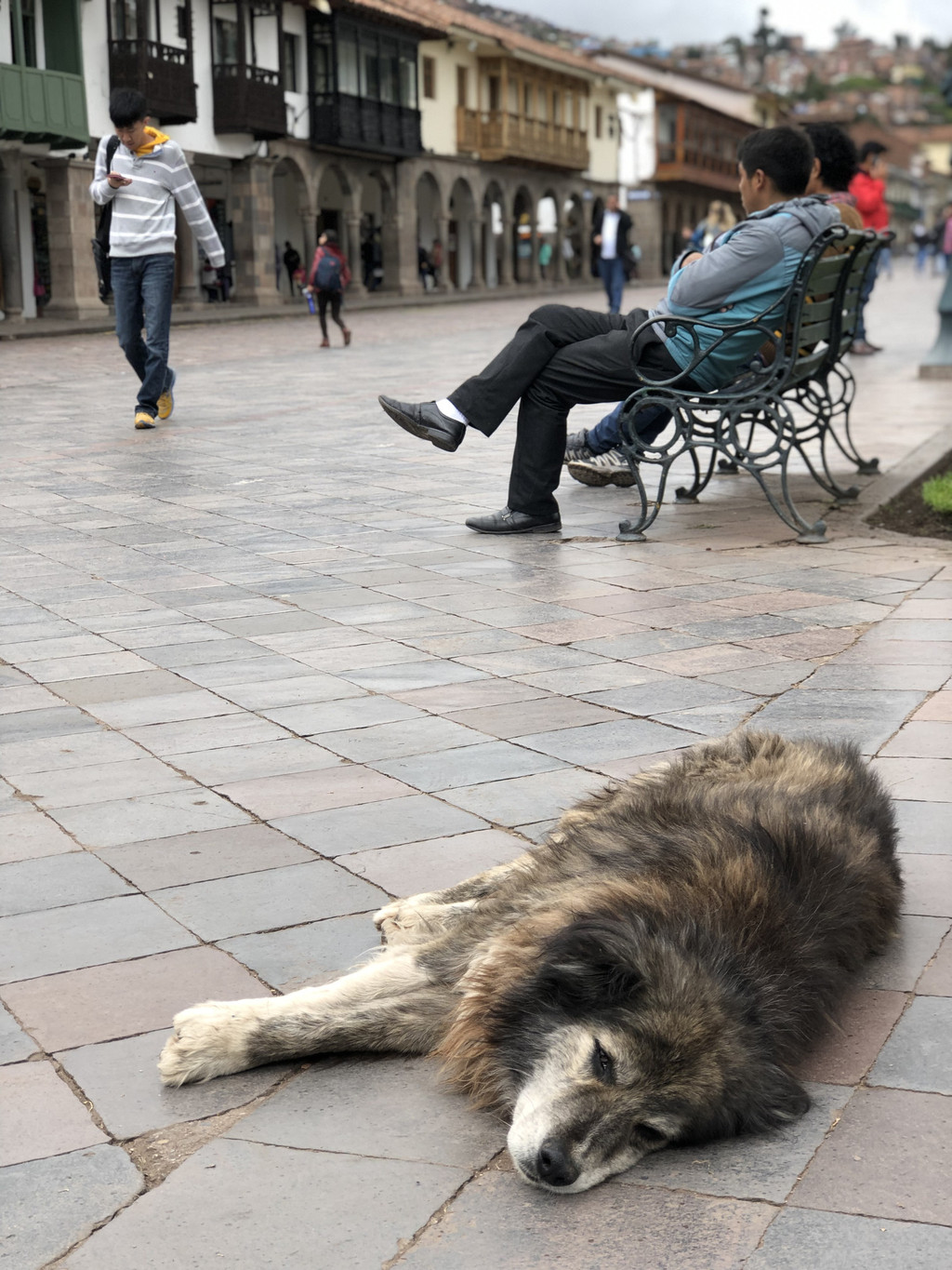 在南美洲国家,几乎每一个城市都有一个中心广场,在这里聚集了城市里最重要的教堂和一些具有历史意义的建筑,人们喜欢在广场中心的长凳上休息,跟陌生人聊天,喂鸟,看书,发呆。在库斯科,这个广场就是武器广场。广场上还有牵着羊驼的当地人,在找我们这样的外国人拍照合影,不过警察一来就都跑了。