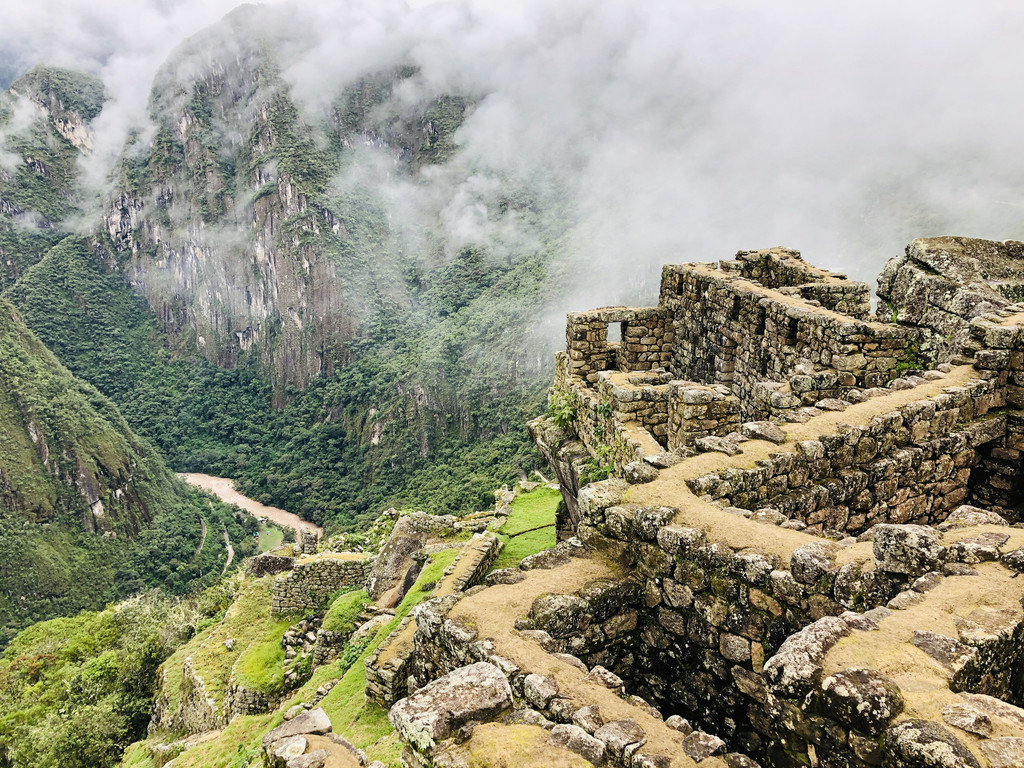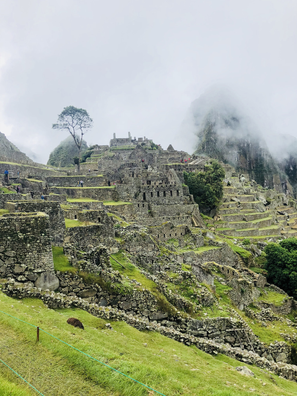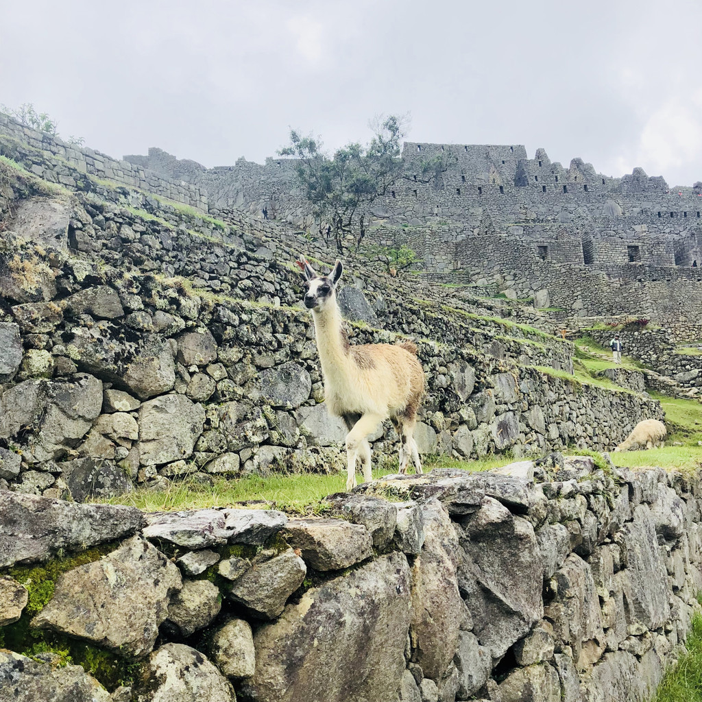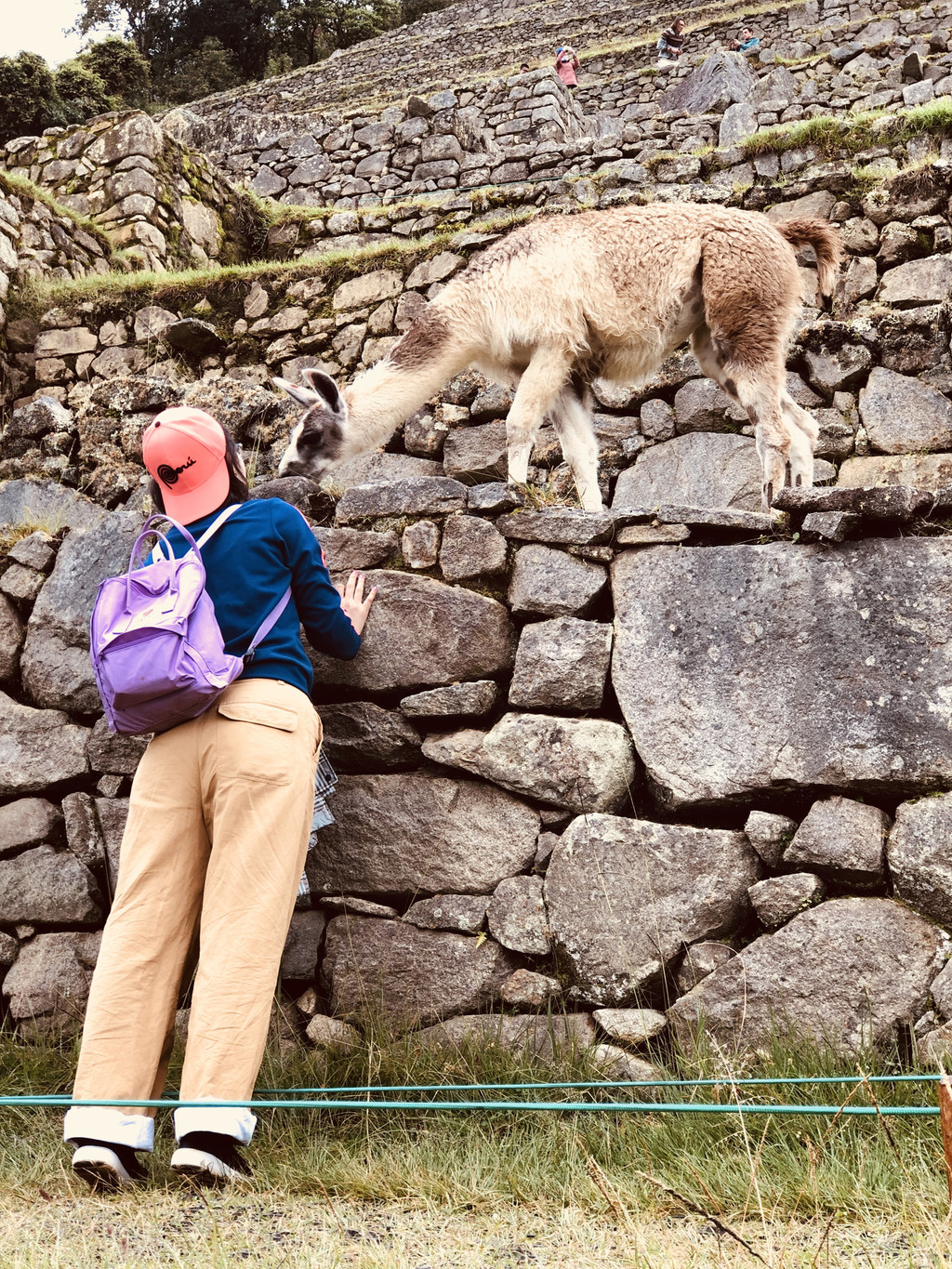 马丘比丘海拔2400多米,从热水镇需要一段爬升的山路才能到达,一路上七拐八拐的终于到了。进入景区后,需要按照指示箭头前进,不能走回头路,里面还有很多散养的羊驼在四处游荡,整个游览下来要2个小时左右吧。如果还有多余的时间和体力,还可以选择攀爬华纳比丘,也就是照片里被云雾遮挡的那座山丘。为了驱散云雾,我们和很多游客一起自发的向同一方向吹气,吹完气后,大家又都笑成了一团,哈哈,这样的时光总是会铭记心底的。