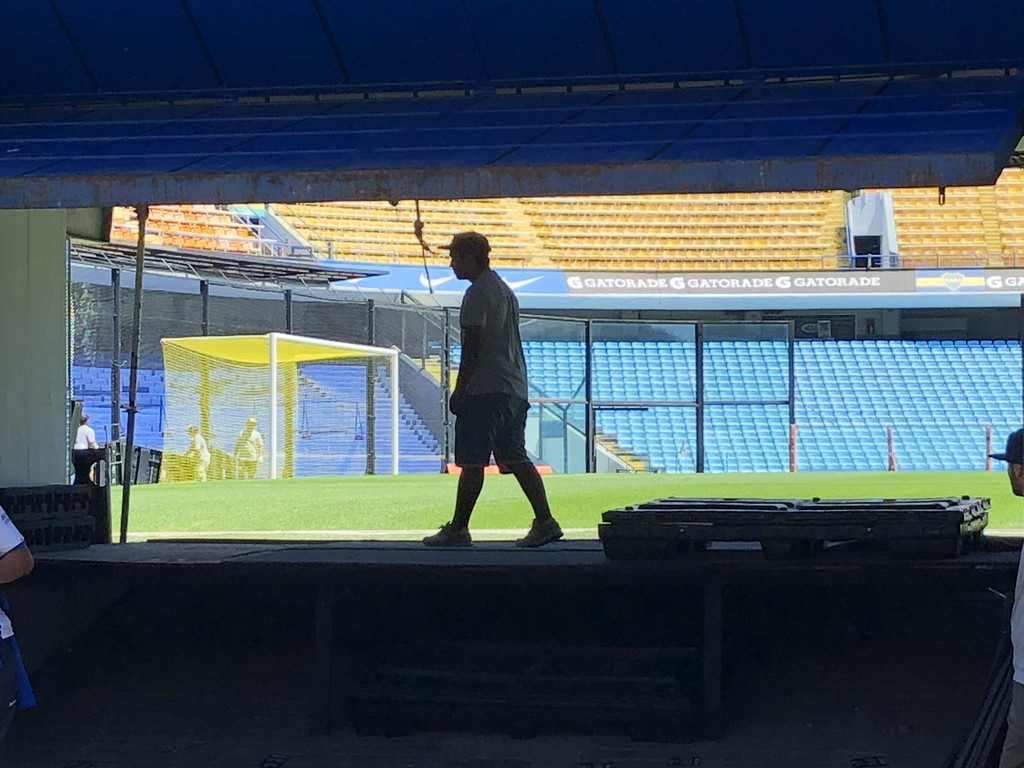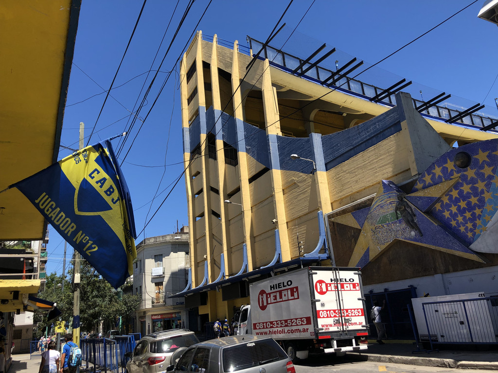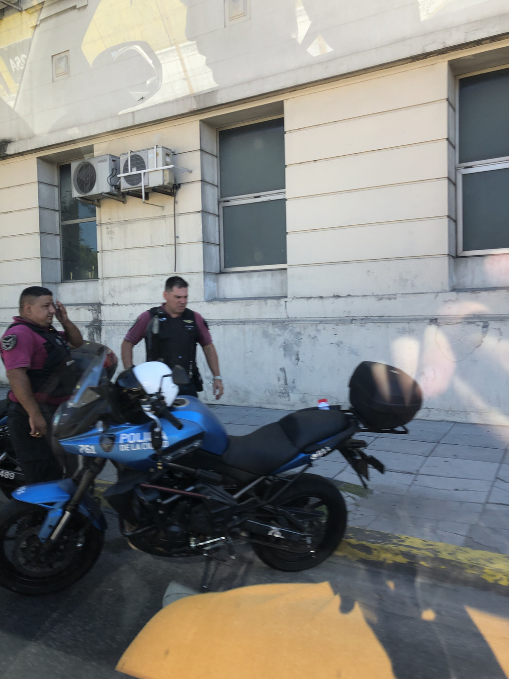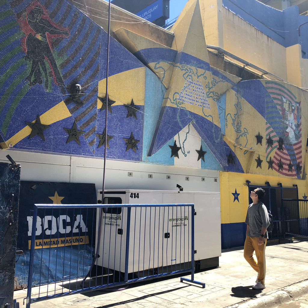 在酒店大厅坐了半个小时后,决定叫车去机场,不过在回住处取行李的路上,我们还是不甘这剩下半日的时光就如此浪费在机场,于是我们在出租车上决定了一个说走就走的地方-博卡街区。虽然我们不是足球迷,但博卡的名号还是响当当的,想想现在老马球王也离世了,2020真是让人唏嘘。博卡街区的治安很差,再经过刚刚的“泼粪党”,我们决定不再徒步游览,而是包下了出租车,让司机先带我们去博卡,再送我们去机场。司机大叔非常nice,虽然我们互相听不懂对方,但靠着手机翻译,我们的沟通过程还是很愉快的。这下有当地人加持,而且我们也不乱跑,肯定会安全很多。当晚还有比赛,球迷和警察早就严阵以待,因为在车上所以拍的不真切,但那种大战前的氛围却是能实实在在感受到的,阿根廷不愧为足球王国。