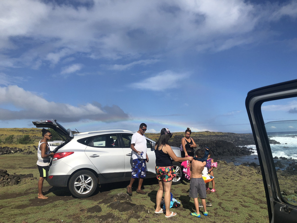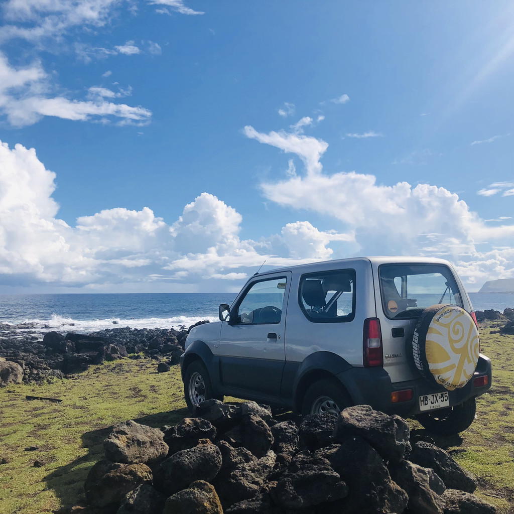 现在整个复活节岛其实就可以理解为是一个国家公园了,下了飞机后在进入机场的通道口处就有卖公园门票的,具体价格好像是54000比索,不过公园查票的地方并不多,鸟人村和阿基胡杨只能去一次,其他地方是可以随便去的,不过我们也就只去了一次。在岛上要做好防晒,还有些流浪狗,不过基本比较友好,不招惹就行。岛上租车只有两家,jimny一天50000手动。