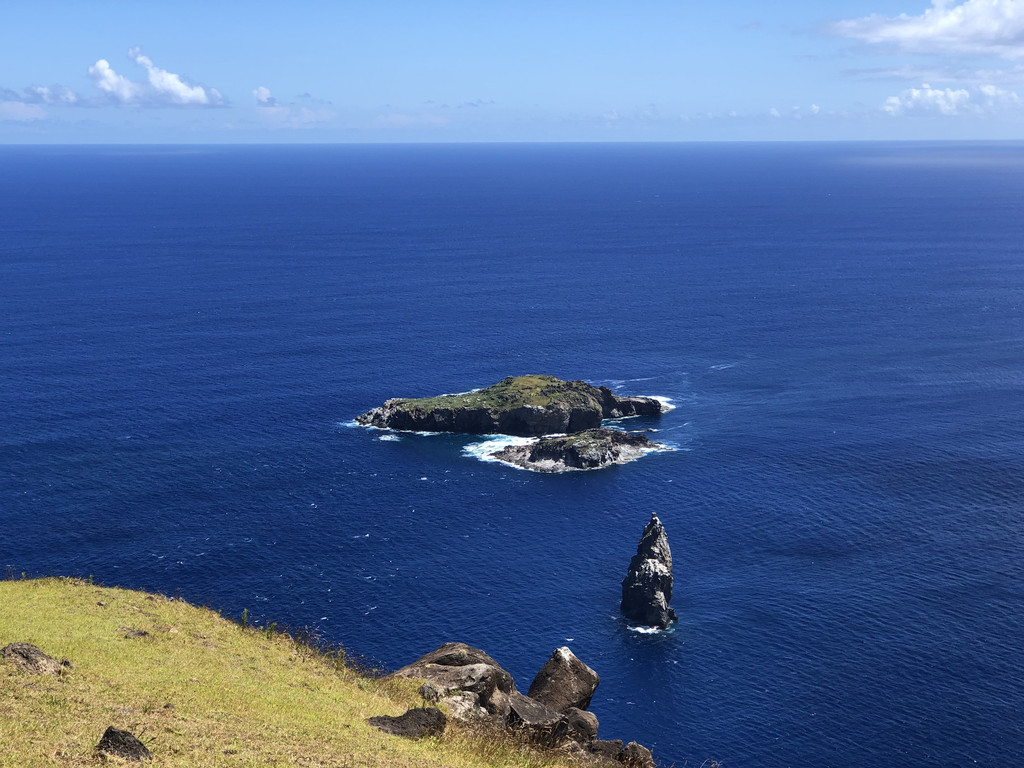 拉诺廓火山是复活节岛上著名的景点之一,站在火山口上俯视下面的火山湖,而旁边就是大海,景色非常美。不远处就是岛上的一处文明遗迹-鸟人村,这是原住民-波利尼西亚人曾经居住的地方,也是岛上仅有的两个凭票只能去一次的地方之一。沿着路线上山后,会看到一个小的停车的空地,那里是欣赏火山的一个地方,另一个地方就要进入鸟人村了,在进入鸟人村最深处的时候,也同时走到了火山口上,可以从另一个角度欣赏火山。