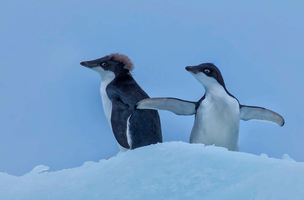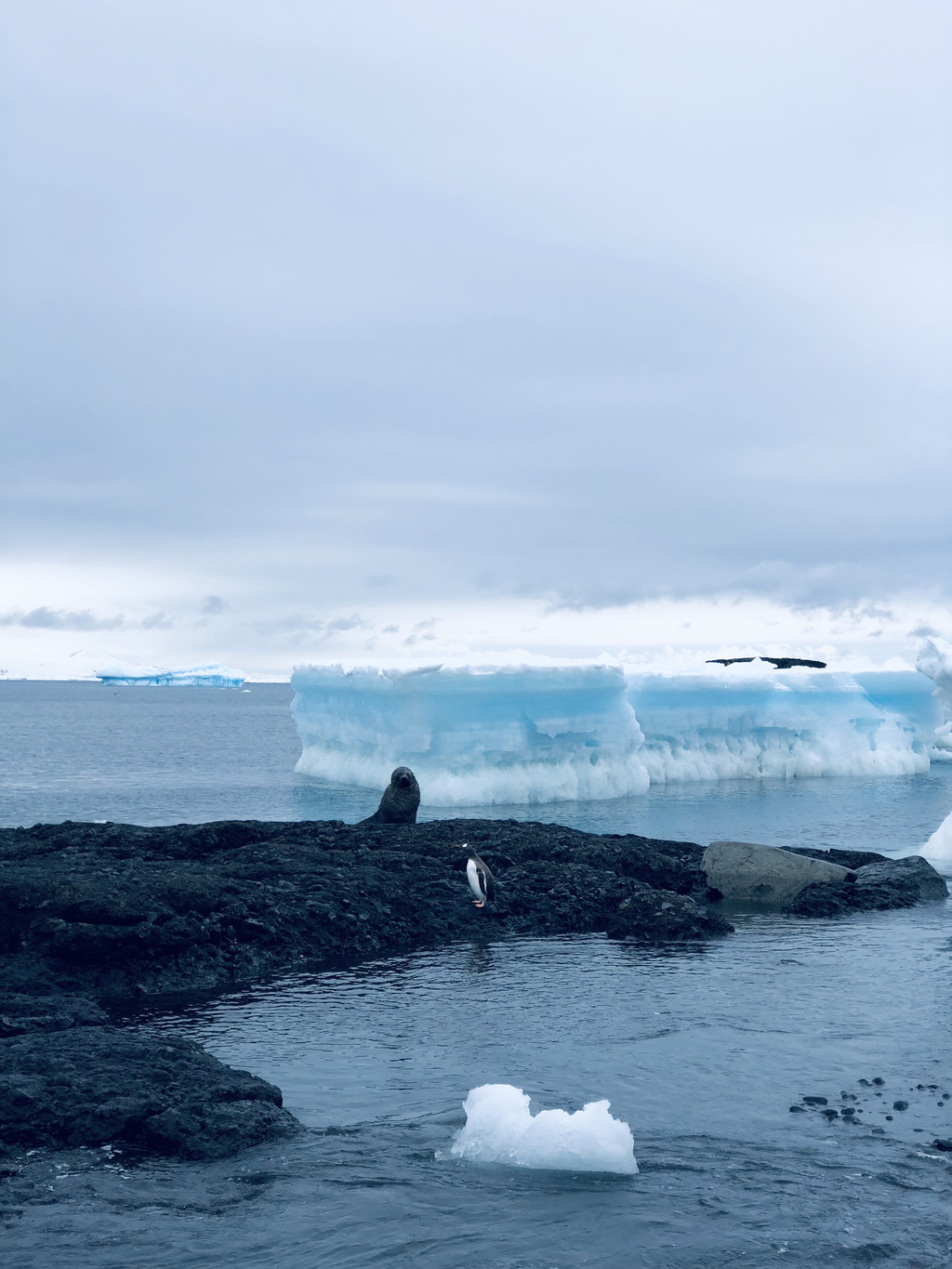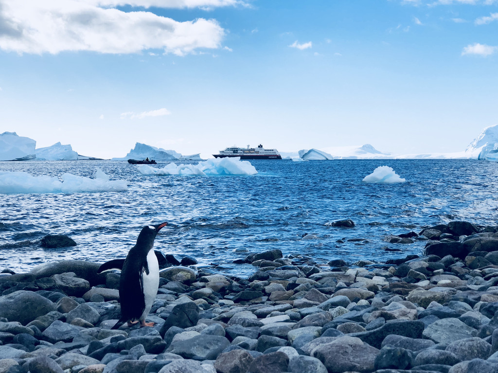 上午在埃雷拉海峡进行了一次巡游后,便直奔天堂湾。天堂湾名副其实,可谓是南极半岛最美的地方,高耸的雪山、巍峨的冰川、静谧的海面已足够让人震撼,但当你看到成双的座头鲸游向水面又潜入水底、成群的金图企鹅霸占了阿根廷人的科考站、列队的蓝眼鸬鹚飞过海面又飞过冰川、落单的海豹在浮冰上伸着懒腰时,你就会明白,这里是我们的天堂,更是它们的天堂。