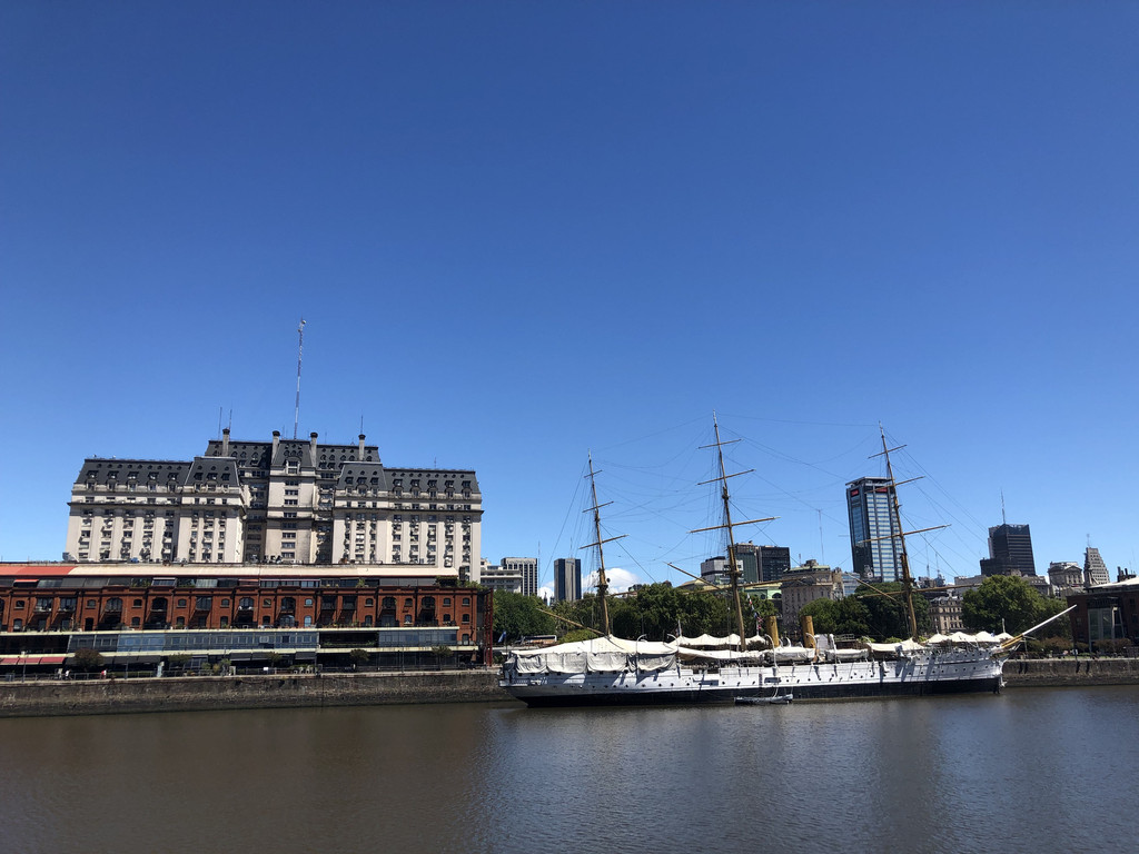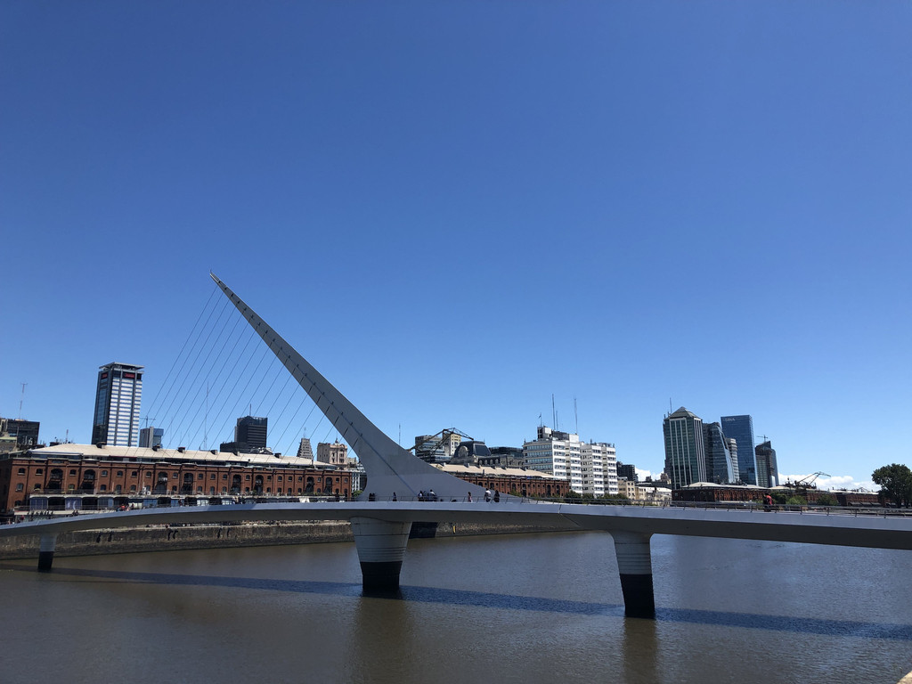 女人桥是一座白色斜拉桥,全长160米,它的造型看起来像一条鲨鱼的形状,但其实是要表现一对在跳探戈的男女的造型。岸边有一艘老式帆船军舰,被改造成了一个小型水上博物馆,旁边陈列着几门舰炮,彰显着老西班牙帝国曾经的荣光与新阿根廷共和国昔日的辉煌,而今都已作古。马德罗港还有各式各样的餐厅,我想只有夜晚才是这个地方生机勃勃的时刻吧。