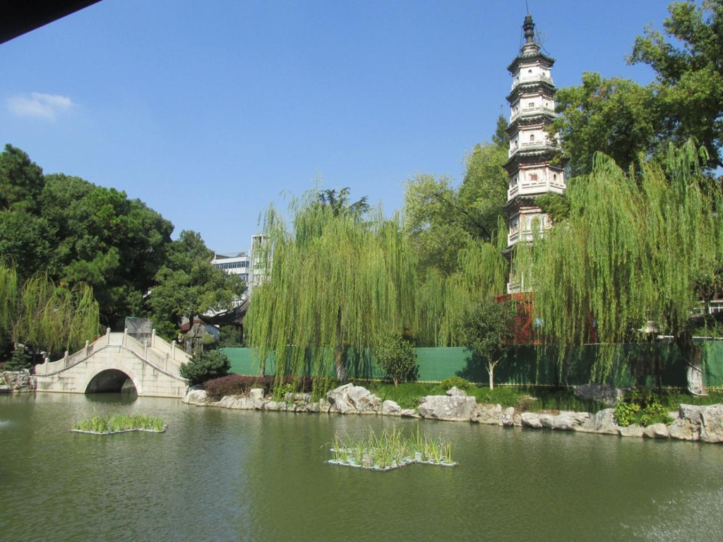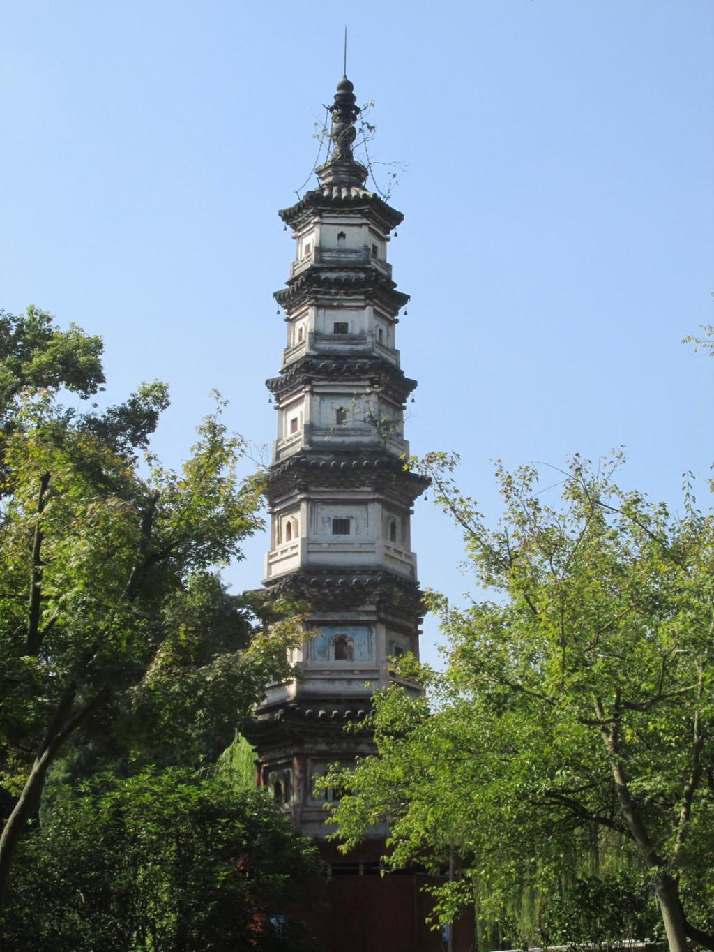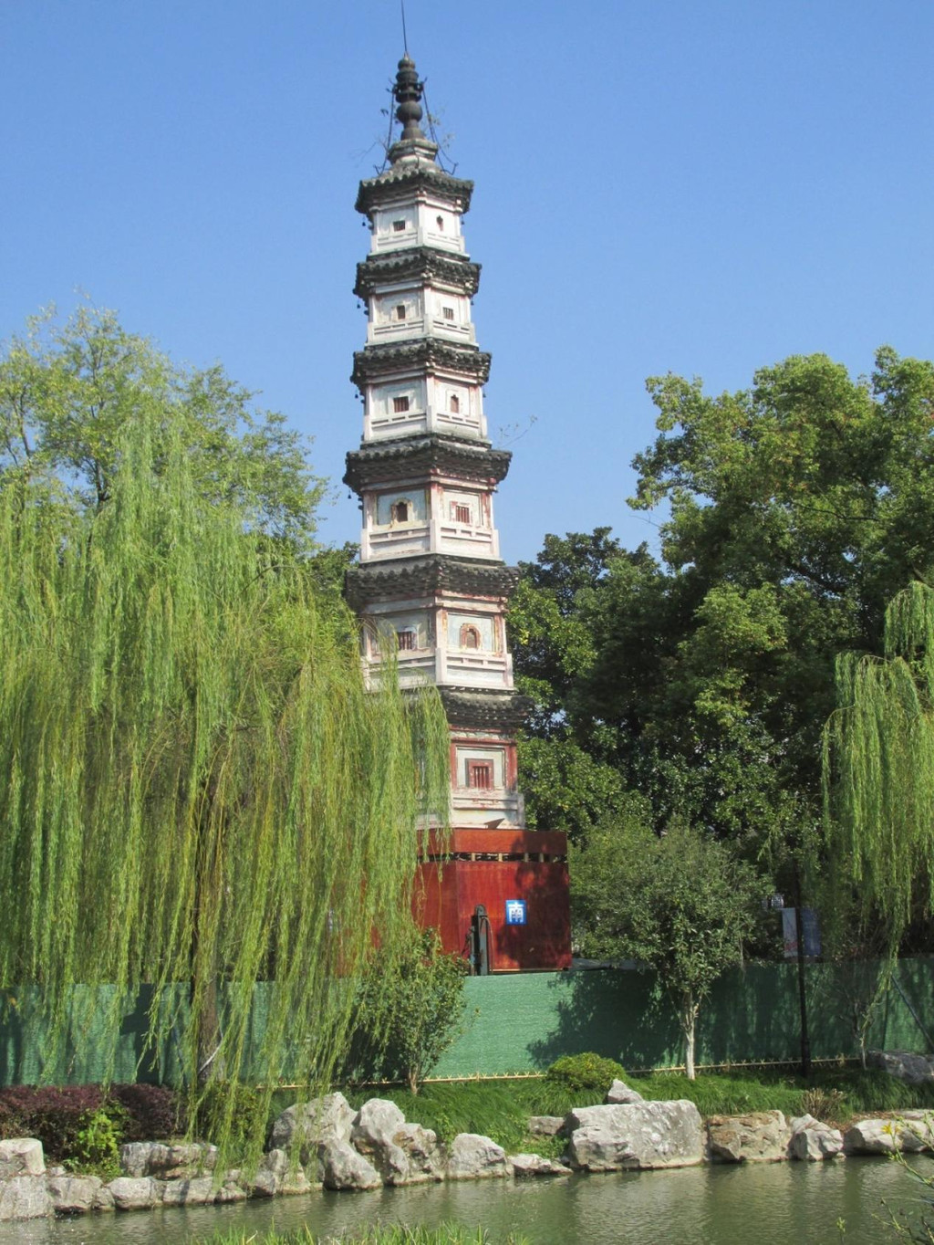 去了中山公园。抬头看到了始建于明嘉靖年间,重建于咸丰三年的文璧巽塔。因为有围档围着在修缮中,没能就近观看,只有在荷花池对面又拍了两张照片: