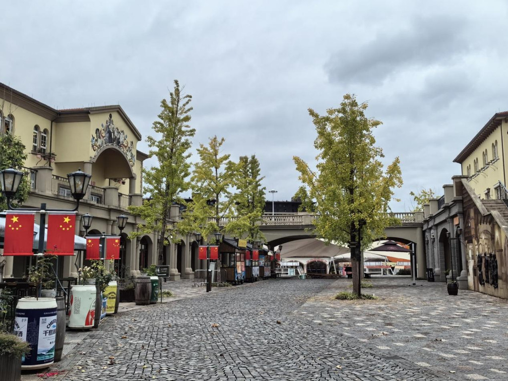 第二天第一站就是去的千岛湖啤酒小镇。转了一小圈,小镇里有银杏,还没黄,半黄半绿吧。顺着有廊架的步道,就可以看到网红灯塔了。天气不好灰蒙蒙的,拍不出小红书上夏天惊艳的色彩,不过确实人很少,随意就能拍到没人的照片。