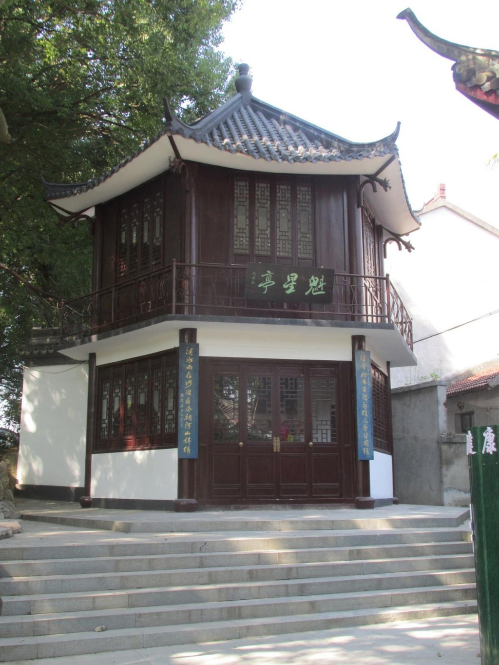 往前走看到了魁星亭。走上高坡,看到了修缮中的孔庙后部。沿着荷花池缓缓走过,来到了吕园。吕园是怀念明代思想家吕留良的纪念园,里面建有吕晚村纪念亭,亭中立有石碑。