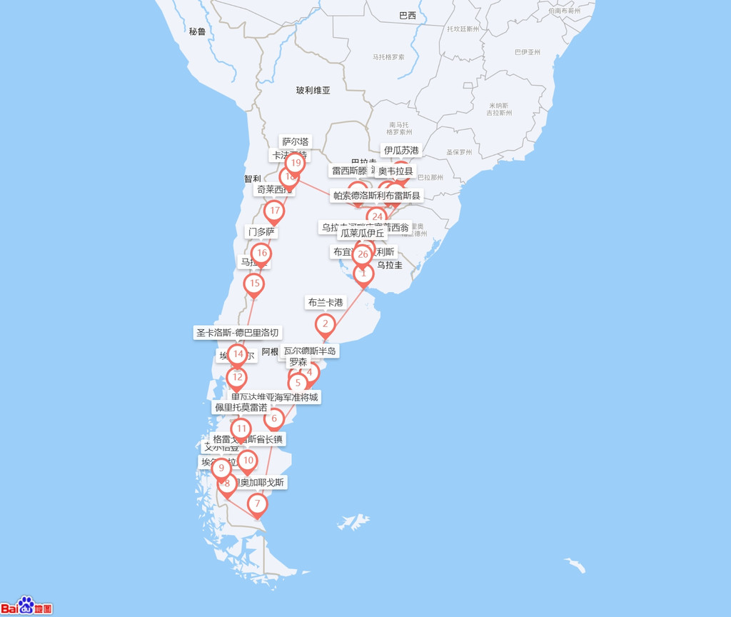 在阿根廷一共待了65天,其中自驾56天,车程12350公里。