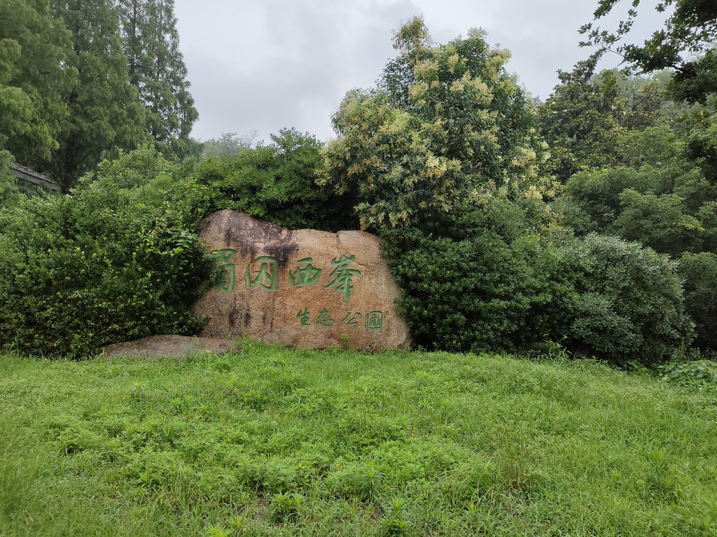 我们走的是平山堂路的入口,这里也是蜀冈生态公园的南入口。走进去就看到石刻的公园名称,一片大草坪后就是密林。不过这片草坪并不像我们常见的品种,倒有点像杂草丛生的模样,但颜色青翠碧绿,倒也好看。