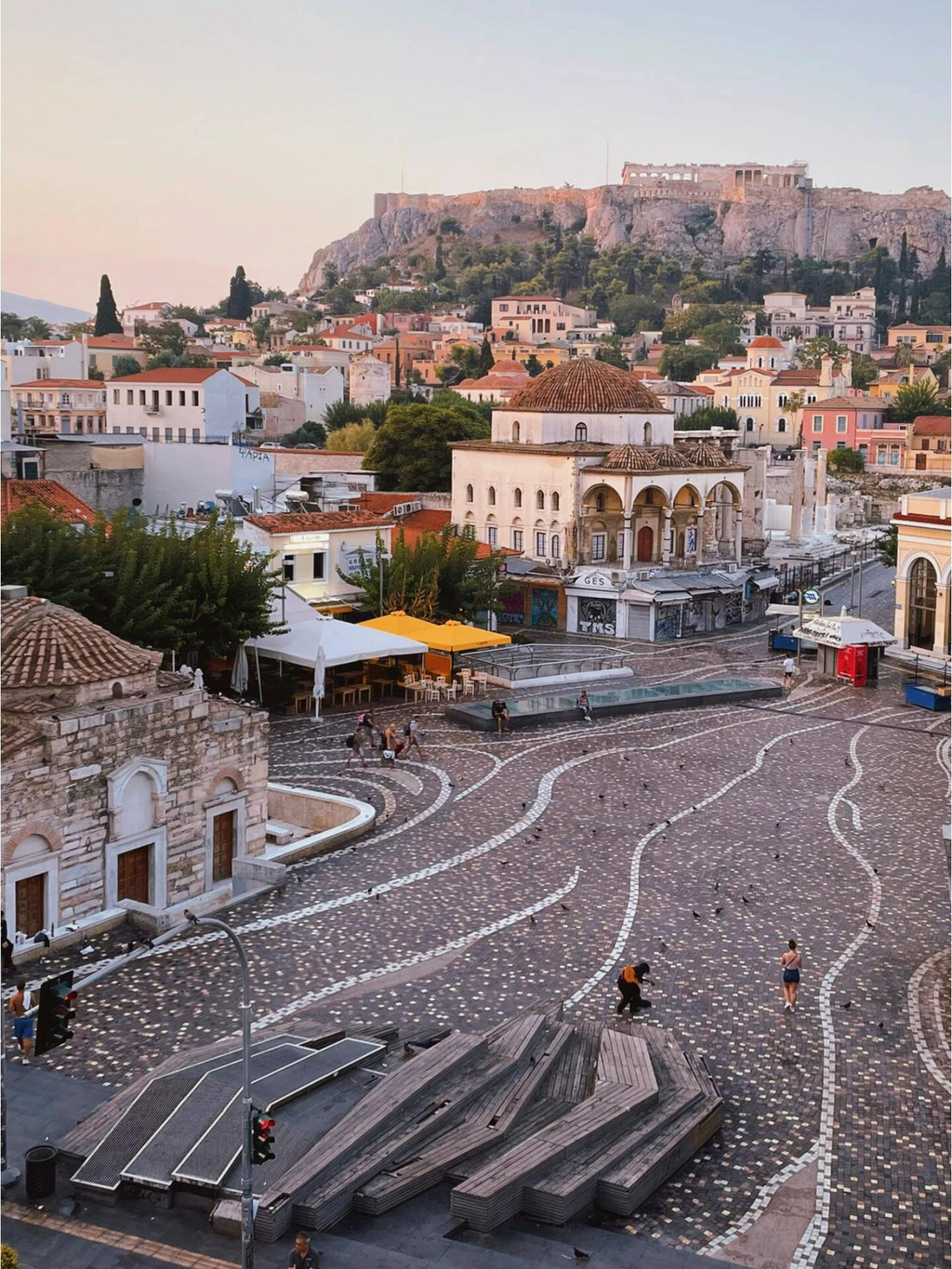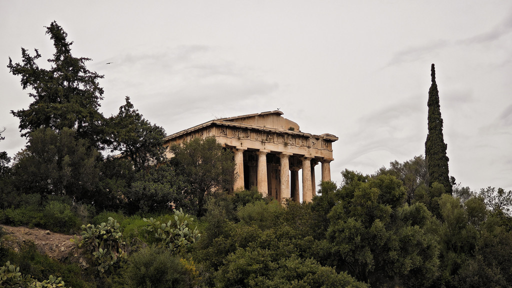 卫城下面就是雅典的老城区。雅典老城区现存两处古市场遗迹,一为古代市集/广场(Ancient Agora),一为雅典古罗马市集(Roman Agora),这里的阿塔罗斯柱廊(Stoa of Attalos),是雅典唯一一个完全修复了的古迹。赫菲斯托斯神庙(Temple of Hephaestus)也在这里。在它前方的地基曾是阿波罗神庙,是一座建于公元前4世纪的爱奥尼式小型神殿。古代市集的最大魅力在于他们就隐藏于雅典老城区的中心地带,与民居和各色杂货店的老街风情融为一体。现在的古市集更像一个闹市中公园。卫城通票可以在这里使用。这里的餐馆很多,坐在露天就可以远望雅典卫城。