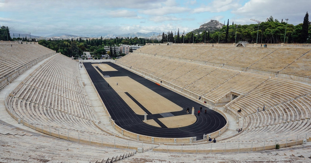 又称帕那辛纳克体育场或泛雅典娜体育场,是第一届国际奥林匹克运动会的会址。 它是17世纪末由雅典的扎巴和阿维诺夫出资,仿造古希腊竞技场的格局建造的。这是世界上唯一一座全部用 大理石兴建的大型体育场,可容纳7万人,2000多年前就用如此昂贵的材质,实在令人惊叹。迄今,现代奥运会前夕,仍须指派代表前往雅典市中心的泛雅典娜体育场(Panathenaic Stadium)进行取圣火仪式,以表对古奥运会的传承与尊重。来到此地,最好的体验就是亲自跑一圈体育场跑道。感受奥林匹克的精神。