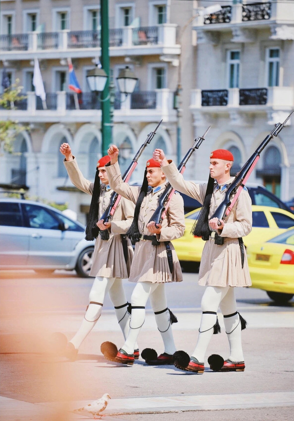 宪法广场(Syntagma Square)是雅典的中心地带,每次希腊发生的大事件都会在这里庆祝或者悼念。广场是为纪念1834年在此颁布的最初的宪法,因而将之取名为“宪法广场”。在宪法广场看卫兵换岗是个亮点,士兵每天24小时每个整点都有换岗仪式,仪式长度10分钟左右。
