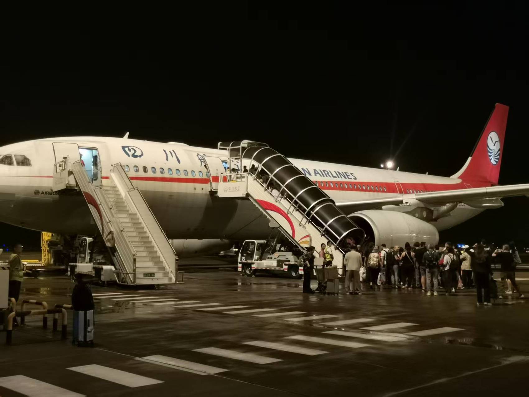 首航客流上座率近九成,主要是旅游观光、会议商务、探亲访友等。旅客构成中,约一半是川渝本地旅客,另一半是来自中国国内和全世界的中转旅客,最远的旅客来自澳大利亚,从天府机场转机去雅典。