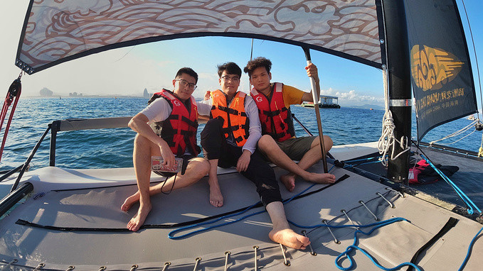 我们这次一行人体验了帆船,海钓,海棠游,珊瑚礁潜水。上岛可以先乘坐电瓶车环岛游,沿途景点可以下车打卡,像情人岛,观日岩等等。蜈支洲岛的配套整体还是非常齐全,非常完善,不管是朋友还是家庭出行都非常方便。