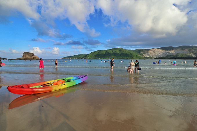 后海的皇后湾适合下海游玩,要知道海棠湾大部分的海滩都是有礁石,风浪也很大,不适合游泳。但是后海这个就非常不错哦。