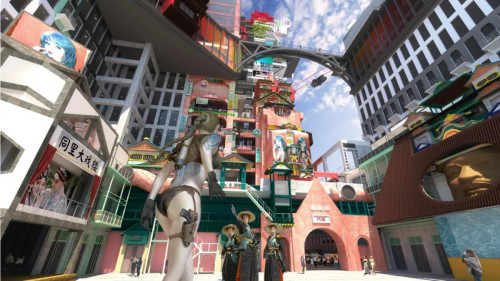天空之城里设计了三大主线:未来篇是以Z世代潮圣地为主,包含了泛二次元业态、祈福庙会、主题演讲秀、动漫游戏企业总部等;过去篇为许鲜农业美食乐园,在怀旧建筑内举办丰收节、螃蟹节和各类食品博览会;现在篇主要是酒店文创休闲MALL。是一个预演未来的乌托邦、光怪陆离的二次元世界、满是超前风格与艺术气息的设计博物馆、荒诞又有迹可循的魔幻乐园。