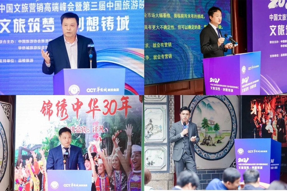 在主旨演讲环节,国家文化和旅游部“十四五”规划专家委员会委员、北京交通大学现代旅游研究院院长张辉,北京联合大学中国旅游经济与政策研究中心主任、中国旅游协会度假分会秘书长、中国社会科学院旅游研究中心特约研究员、世界旅游城市联合会专家曾博伟,深圳锦绣中华发展有限公司总经理汪凡,顶级玩家品牌创始人、深圳沉浸式实景娱乐联盟发起人、深圳市南雁文化管理咨询有限公司董事长贺雁四位专家学者和行业大咖分别就文旅产品和营销的热点和痛点为题发表了主旨演讲。