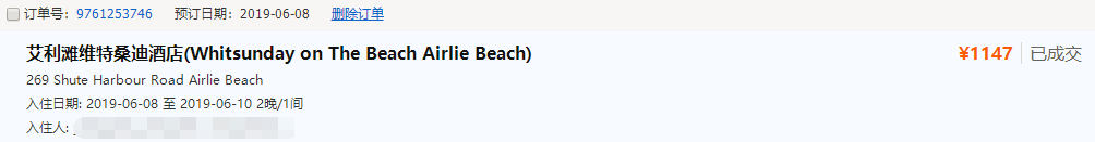 没车的地段开的很快,路边的死猪、死袋鼠、死鸟很多,路过好几个农场,袋鼠见得比较少,奶牛真的很多很多。路上预定了Airlie Beach的一家旅馆,我们通常会比对一下不同平台的价格,因为有的网站有补贴,我们入住的那个酒店叫做艾利滩维特桑迪酒店(Whitsunday on The Beach Airlie Beach)地址:269 Shute Harbour Road,艾利滩,昆士兰,4802,澳大利亚,有3张床,浴室、冰箱等厨房用品,酒店后面是游泳池,周围很多商店、饭馆。