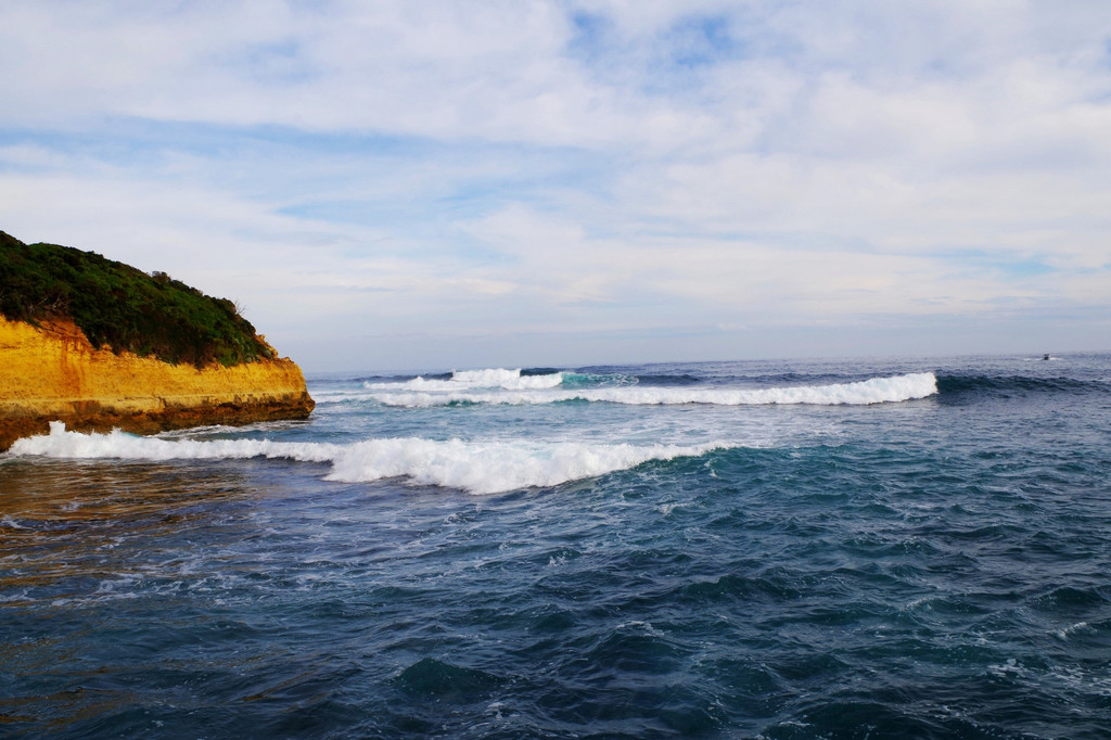 大洋路沿路都是如此大风大浪,海水冰凉,所以不适宜下水。但是能看到很多本地人都会下水冲浪
