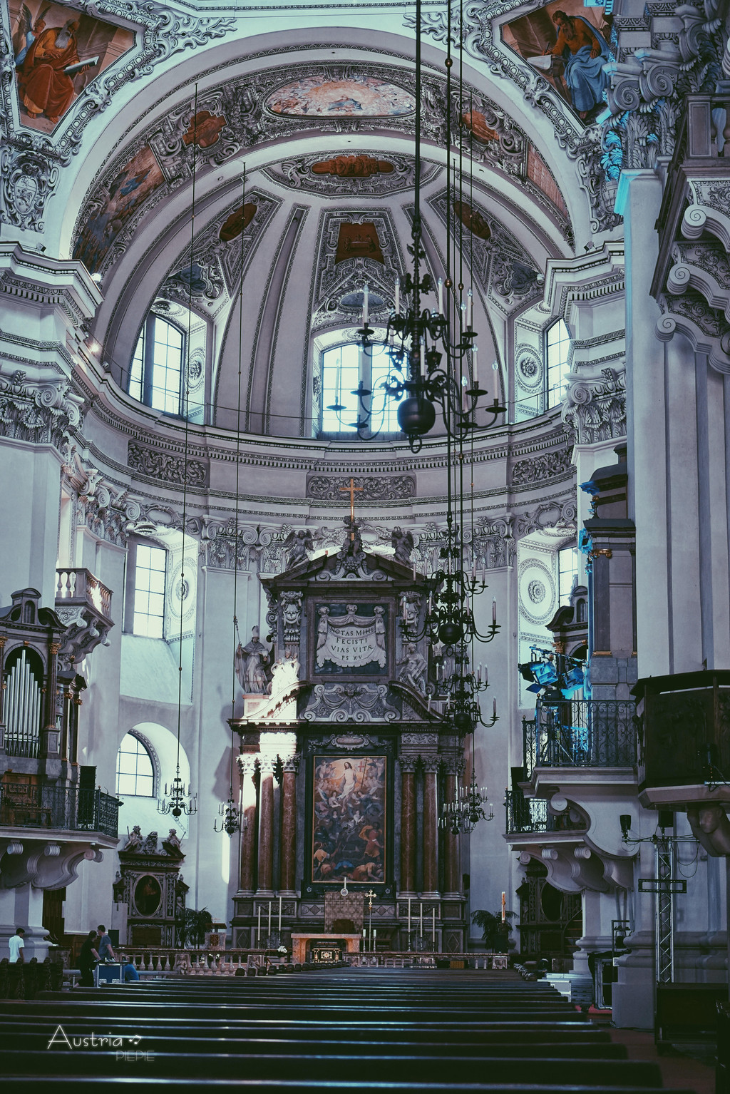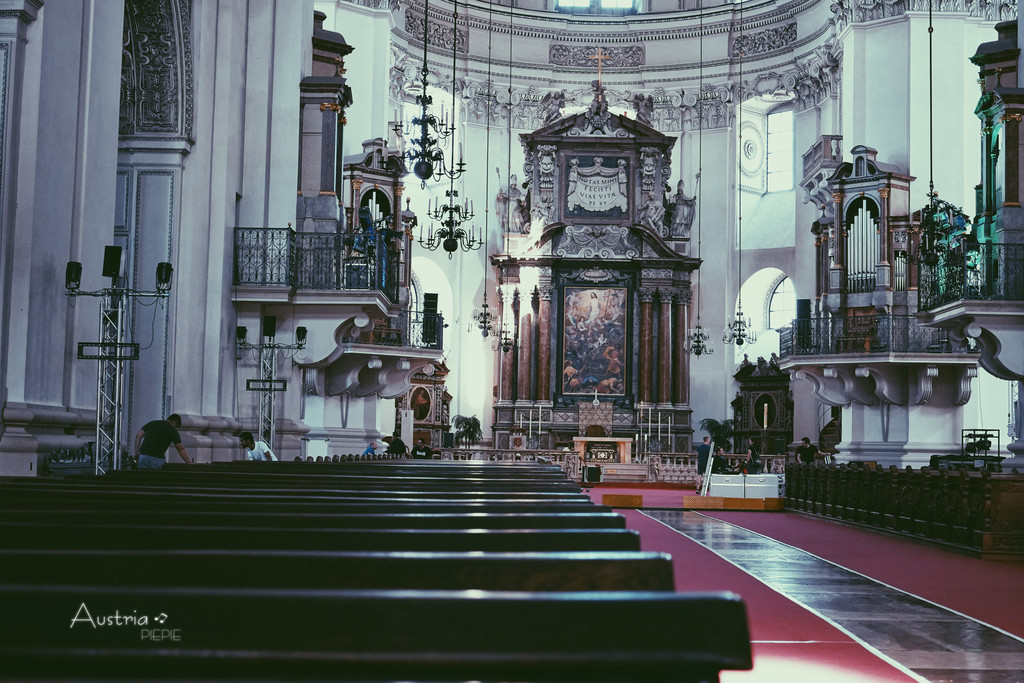 据说,这里是莫扎特接受洗礼的圣堂,也是指挥家 卡拉 扬的葬礼所在地。教堂内至今还保留着曾经为莫扎特受洗的洗礼池,和陈列着他当时演奏的管风琴。